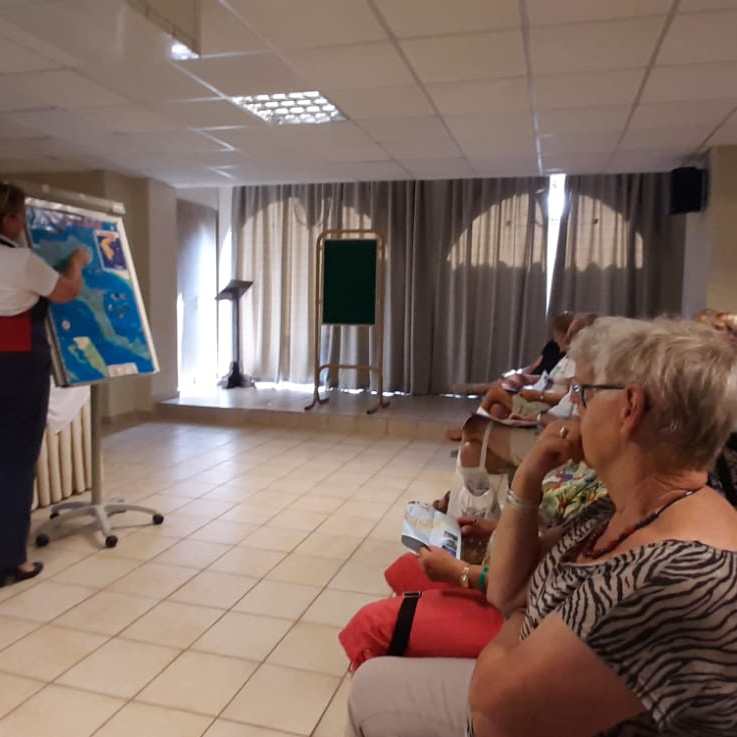 De informatiebijeenkomst om 17.00 uur met goede opkomst is een toegevoegde waarde voor de reis. Hostess Marloes vertelt vol enthousiasme over het eiland Corfu. Onder andere over de Venetiaanse periode 1836-1797. De Venetianen overheersen het eiland en waren de beschermers tegen de Turkse heerschappij. De invloeden van de Ventianen zijn in Corfu overduidelijk. Zo heeft de hoofdstad Corfu/Kerkyra – een stad met een rijke cultuur – veelal een Venetiaanse bouwstijl. Corfu is overigens nooit in handen van de Turken gevallen. Voorts worden de excursiemogelijkheden doorgenomen. Voor onze groep hebben we al twee leuke uitgekozen.