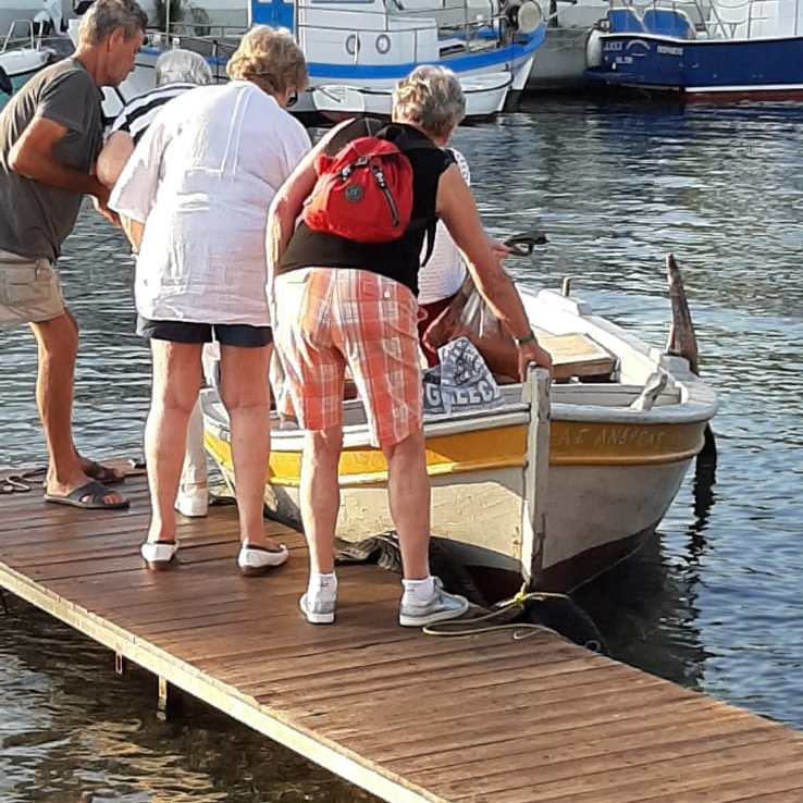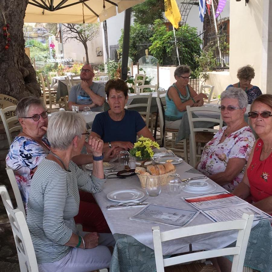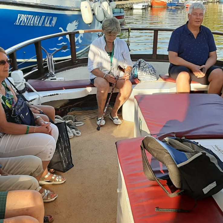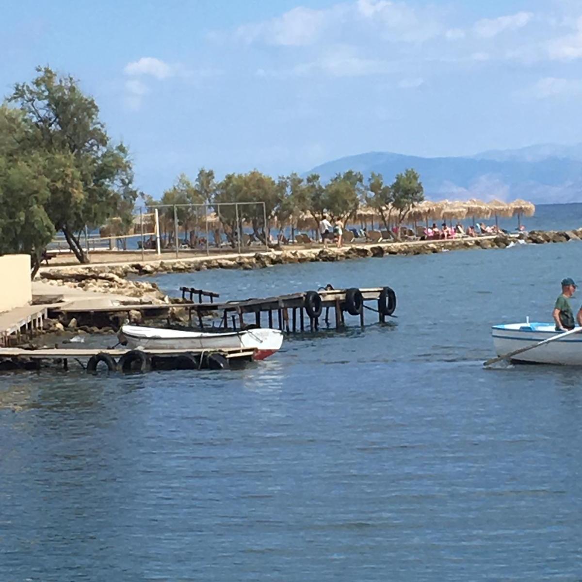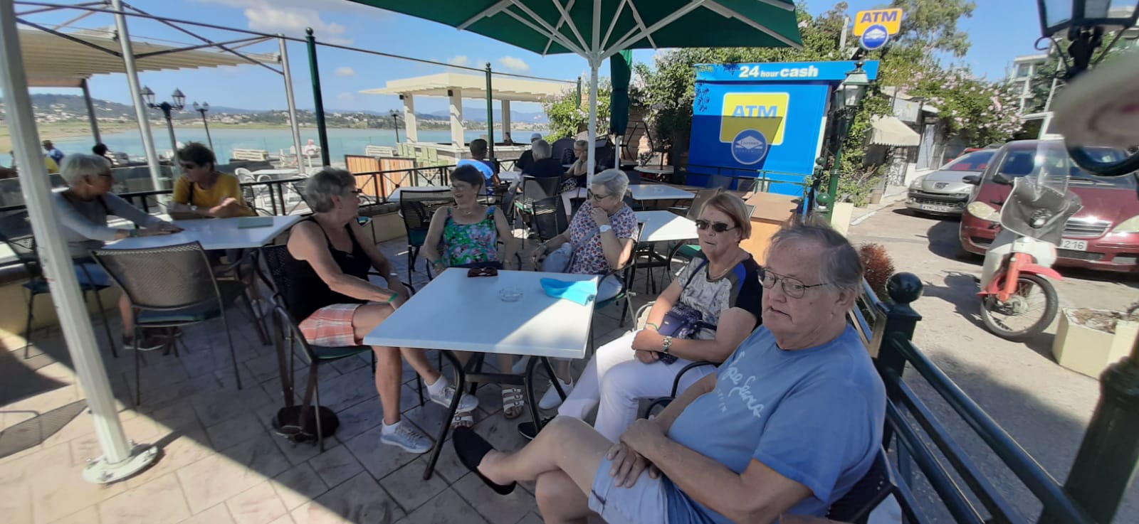 Na het ontbijt gaan we de wijde wereld in. Sommigen maken een wandelingetje naar het dorp langs het riviertje van Messonghi. De vissersbootjes die vastliggen aan de rand zorgen voor de Griekse sfeer. De loopafstand is afhankelijk van het tempo 5 tot 10 minuten. In het dorp vind je souvenirwinkels, restaurants, café’s en andere voorzieningen. Zoals al eerder beschreven kun je ook via het wandelpad in de tuin met een bootje naar het dorp. Je roept “”BOOT, BOOT”” en voor € 1,- word je naar de overkant geroeid. Leuk toch!