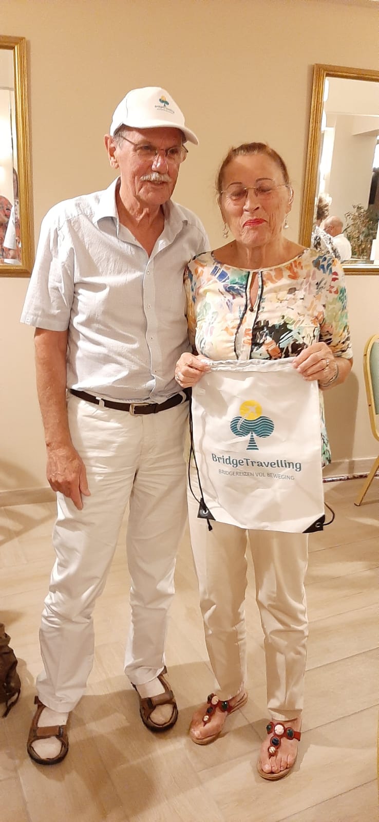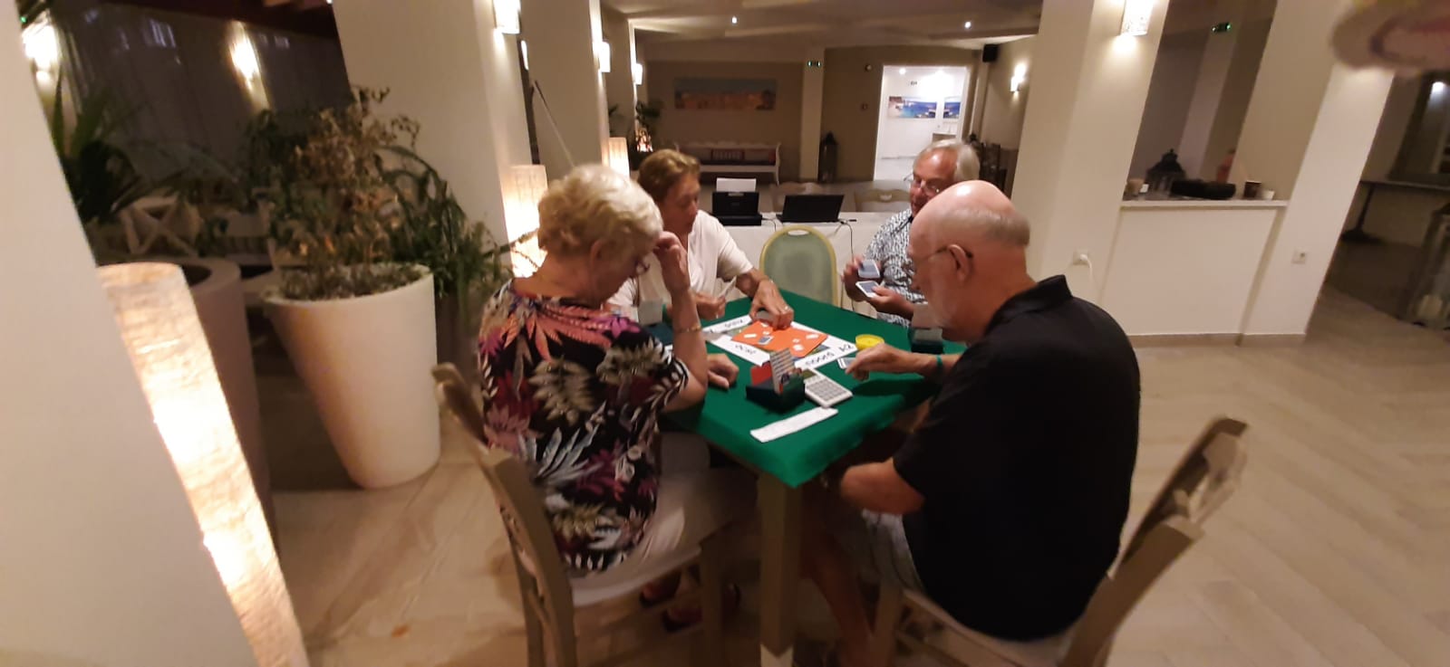 De 9e ronde vangt om 16.30 uur aan vanwege de Griekse avond vanavond. Een aantal paren heeft gekozen voor een vrije bridgedag en zien we weer bij het diner. Het bridge verloopt weer in alle gezelligheid en dit keer vallen de BT-trofees in handen van Elly en Hans. Op de eerste plaats eindigen Louise en Tonny. Van harte! Naar de uitslag.
