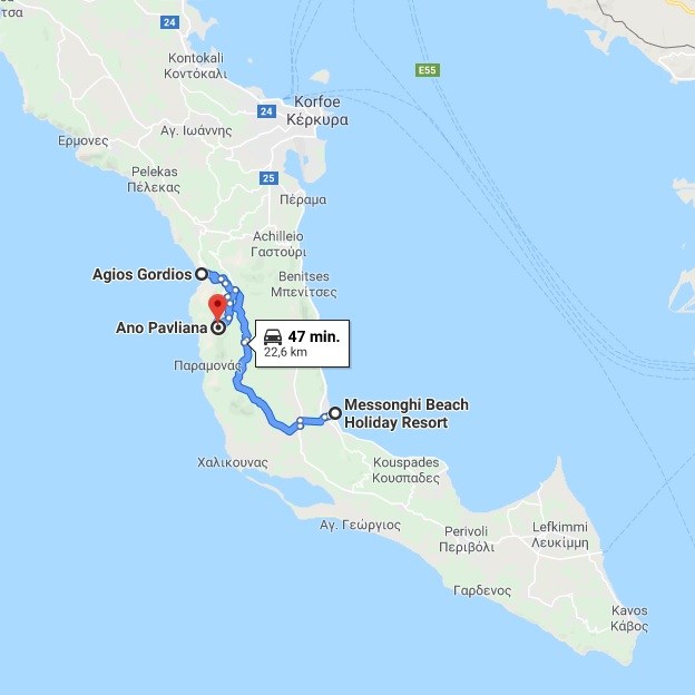 Corfu leent zich uitstekend voor het maken van een mooie autotoer. Op weg via Agios Gordis en Ano Pavliananaar gaat de toer naar Agios Mattheos, een prachtig, schilderachtig groot bergdorp. Vooraf aan de aankomst wordt eerst gestopt voor het prachtige uitzicht. Het oude dorp met smalle, kronkelende, witgekalkte straatjes heeft veel traditionele koffiehuizen en taverna’s. Verder is de gehele streek rond Agios Mattheos en Gardiki een woud van zeer oude olijfbomen.