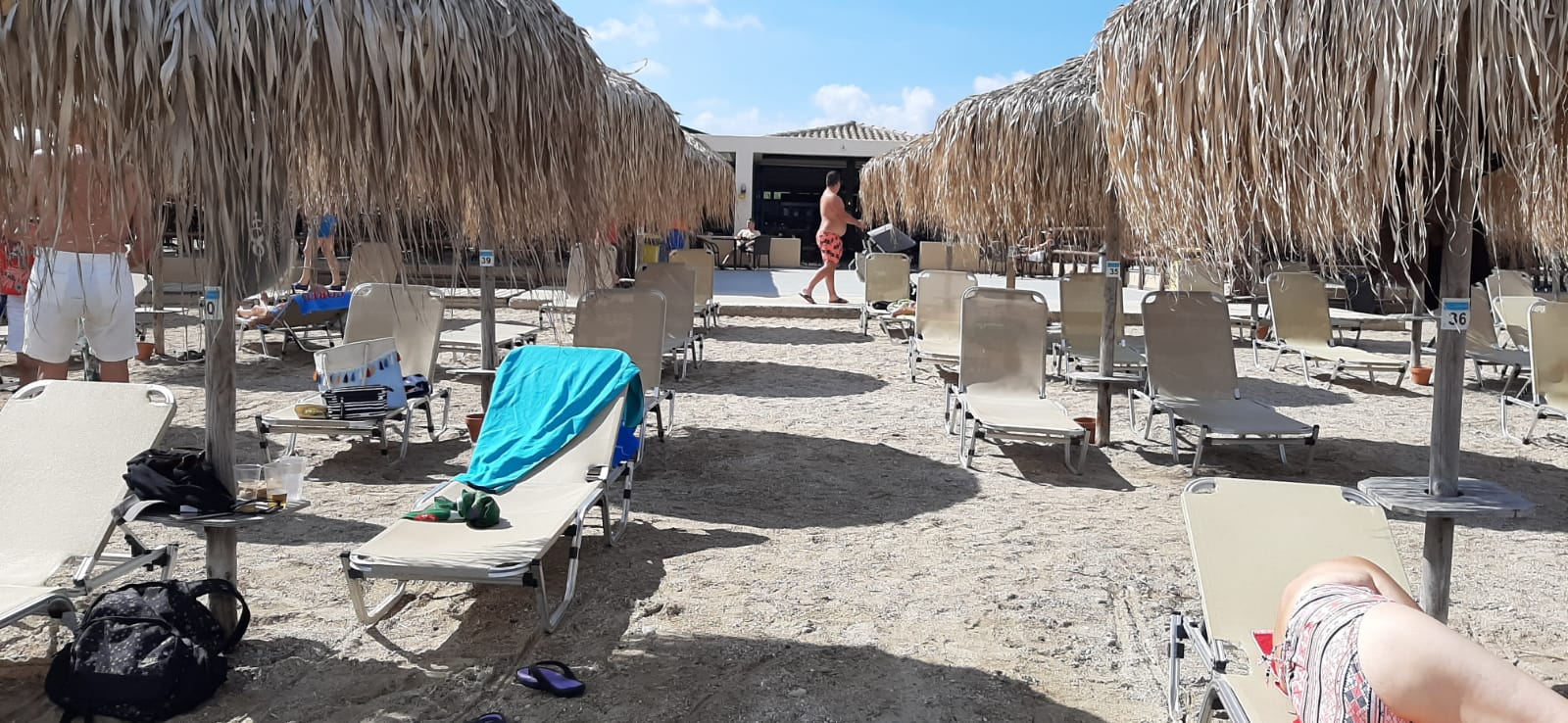 Wie zien tegen 12.00 uur aardig wat gasten aan het strand relaxen, je komt hier heerlijk tot rust. In het beach-restaurant staat een lichte lunch klaar maar ook snacks en koele drankjes. Al met al; we hebben zon, zee, zand, eten, drinken, een ligstoel, boekje, krantje, een mooi uitzicht én een zonnig humeur. Prima ingrediënten om een fijne dag te hebben.