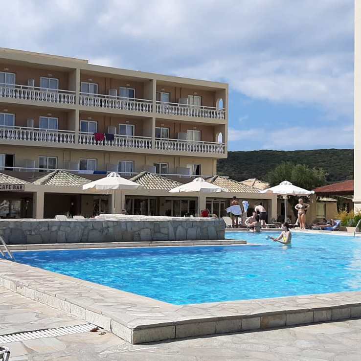 De middag wordt door de thuisblijvers ingevuld met een lunch, relaxen aan het strand én aan het zwembad. Ook zijn mooie Griekse jurkjes uit het boetiekwinkeltje op het terrein gekocht. De indooractiviteiten zijn niet verrassend maar dragen altijd aangenaam bij aan het vakantieplezier. Wat er outdoor gaande is vernemen we later op de dag. De middag suddert verder en zien dat bijna alle gasten indoor aan het genieten zijn.