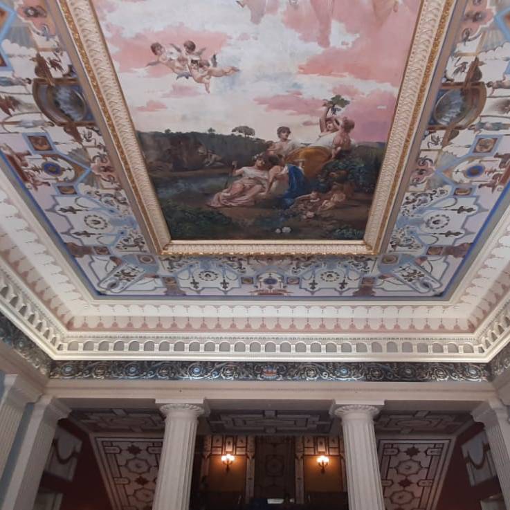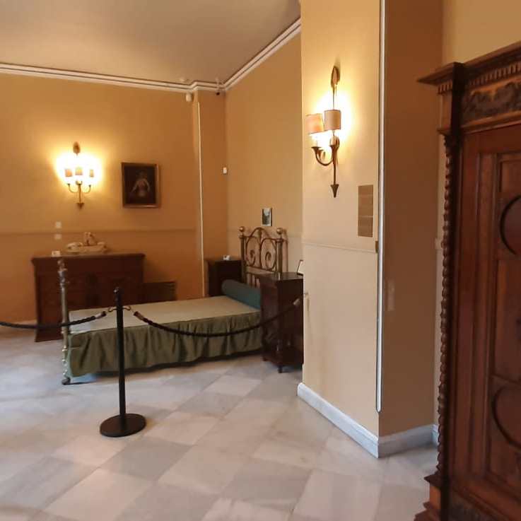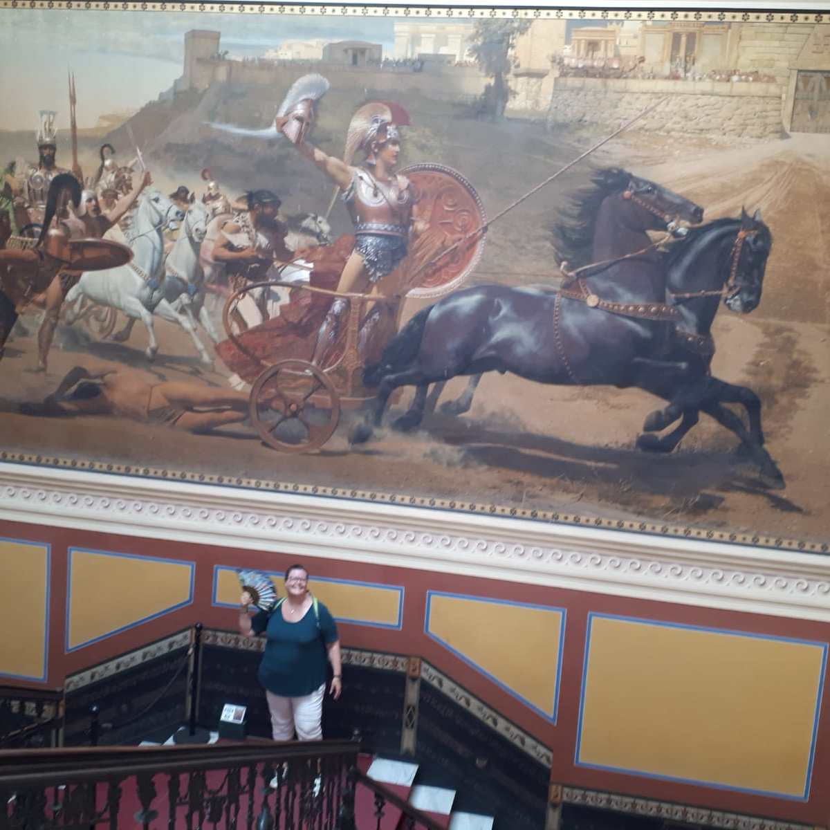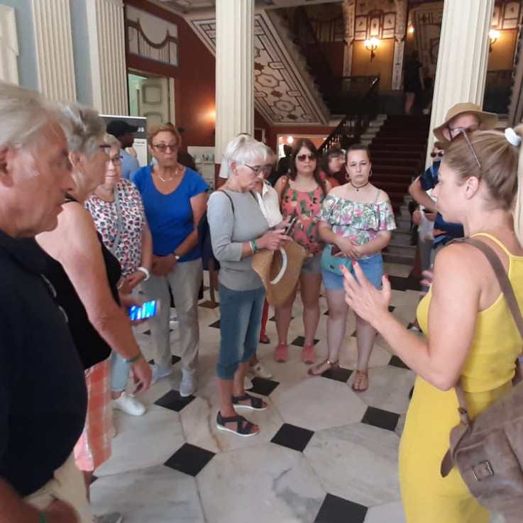 Onze eerste bezoek is aan het paleis van Sissi, Het Achilleon. In het verslag (maandag, 23 september) is de paleishistorie terug te lezen. Tijdens de rondgang vertelt de gids over de keizerin Elizabeth van Oostenrijk (Sissi) tijdens haar verblijf hier. We lopen langs verschillende kamers waaronder de werk- en slaapkamer. Een leuk feitje is dat Sissi geen longziekte maar anorexia had. Ze wilde ook niet meer na haar 40e op een foto. Na deze leeftijd werd haar gezicht van oude foto’s gebruikt op nieuwe schilderijen. Heel ijdel.
