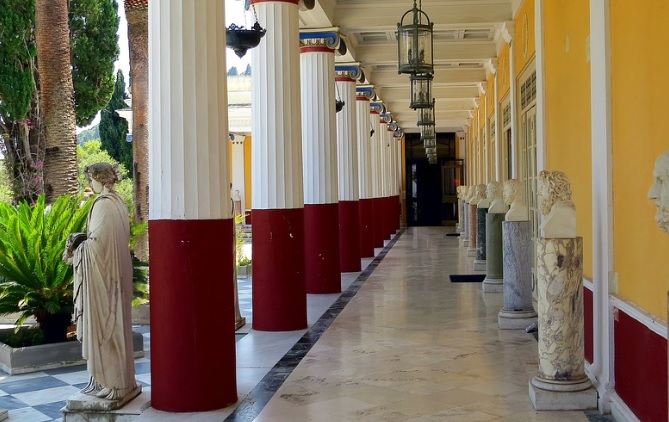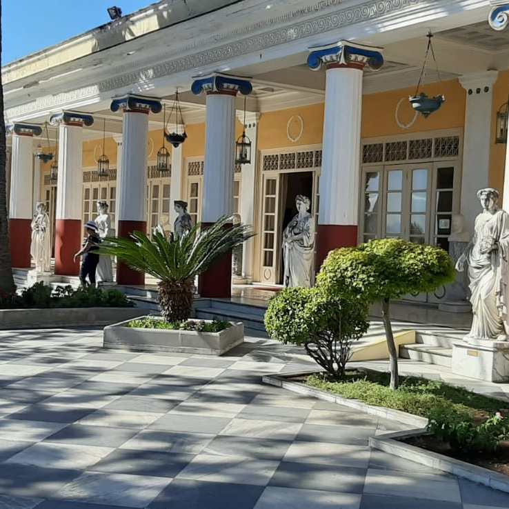 Het Achilleon is het paleis van keizerin Elizabeth van Oostenrijk en ligt vlakbij het mooie dorp Gastouri op zo’n kleine 15 km afstand van ons hotel. Het werd gebouwd tussen de jaren 1890-1892 door de keizerin, nadat ze door haar bezoeken in Corfu verliefd was geworden op het eiland en in het bijzonder op deze plek. Na de moord op keizerin Elizabeth in 1898 in Genève kocht Keizer Wilhelm II van Duitsland het paleis in 1907 en gebruikte het als een plek voor ontspanning. Een bezoek is zeer de moeite waard, het is één van de toeristische trekpleister van Corfu.