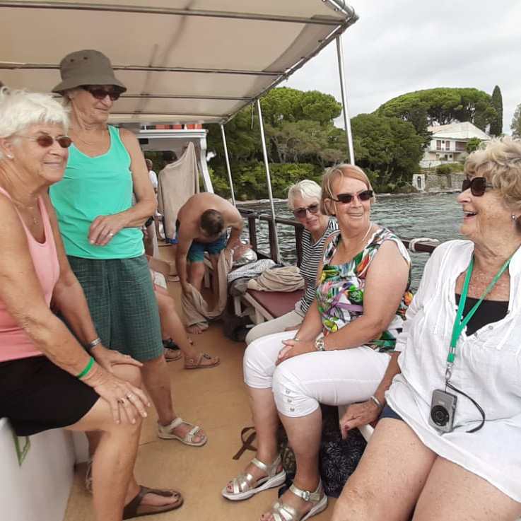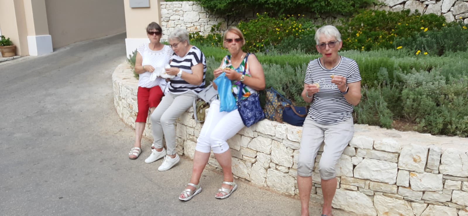 Na weer een heerlijk ontbijt binnen of buiten trekt de groep erop uit. In het voorbij gaan horen we dat een wandeling wordt gemaakt, de ligstoelen aan het zwembad/strand nader worden geïnspecteerd maar ook een bezoek aan het paleis van Sissi, Het Achilleon, staat op het programma.