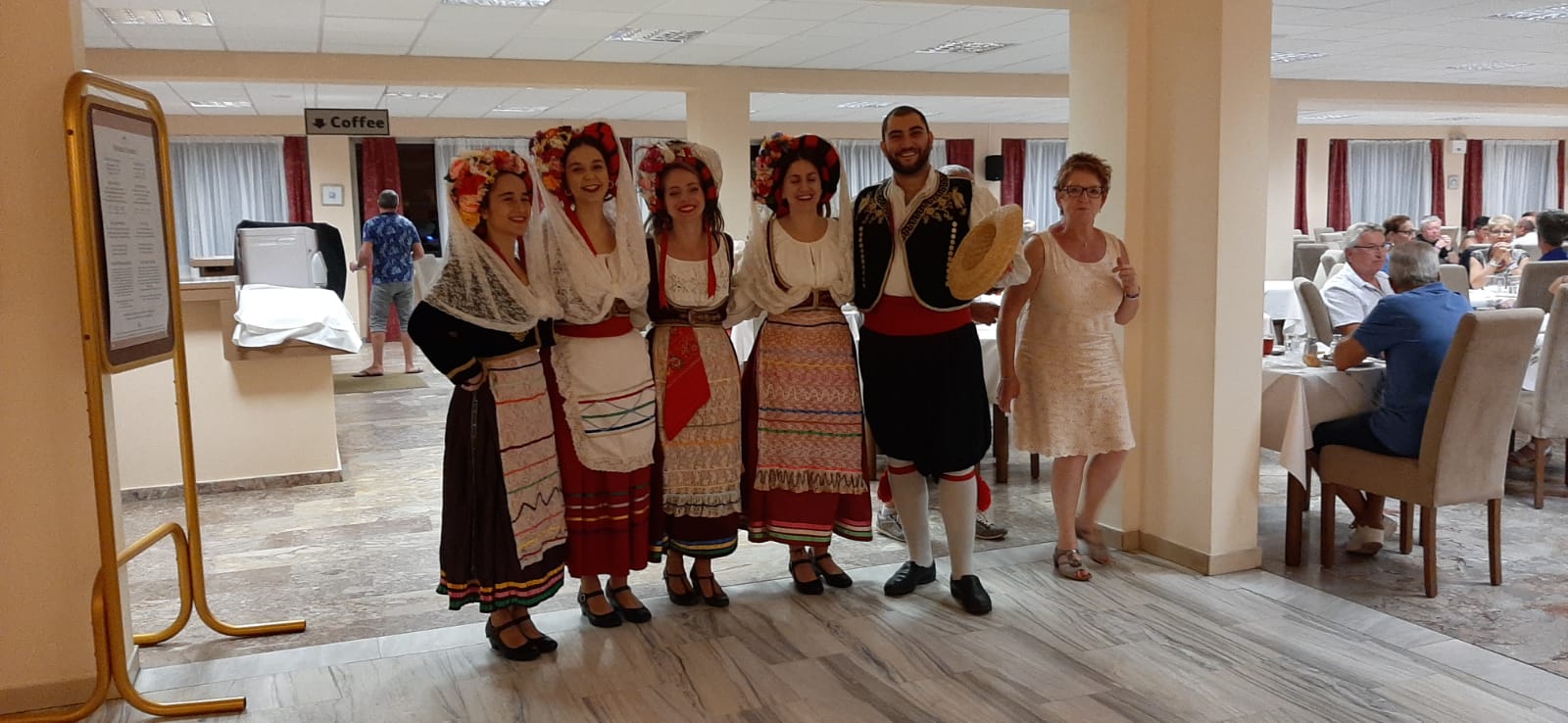 Na het bridgen gaan we naar het restaurant voor het laatste dinerbuffet van deze vakantie. De Servische avond met zangers en dansers is een leuke ervaring. De (volks)muziek is niet zo eenvoudig vast te pinnen op één genre of stijl. We zien wel veel voetenwerk waarbij het hele lichaam meebeweegt 🙂 . In de loop van de avond zien we ook gasten naar de kamer vertrekken, de een wat eerder dan de ander. Morgen om 09.00 uur staat de bus klaar om ons te vervoeren naar de luchthaven.