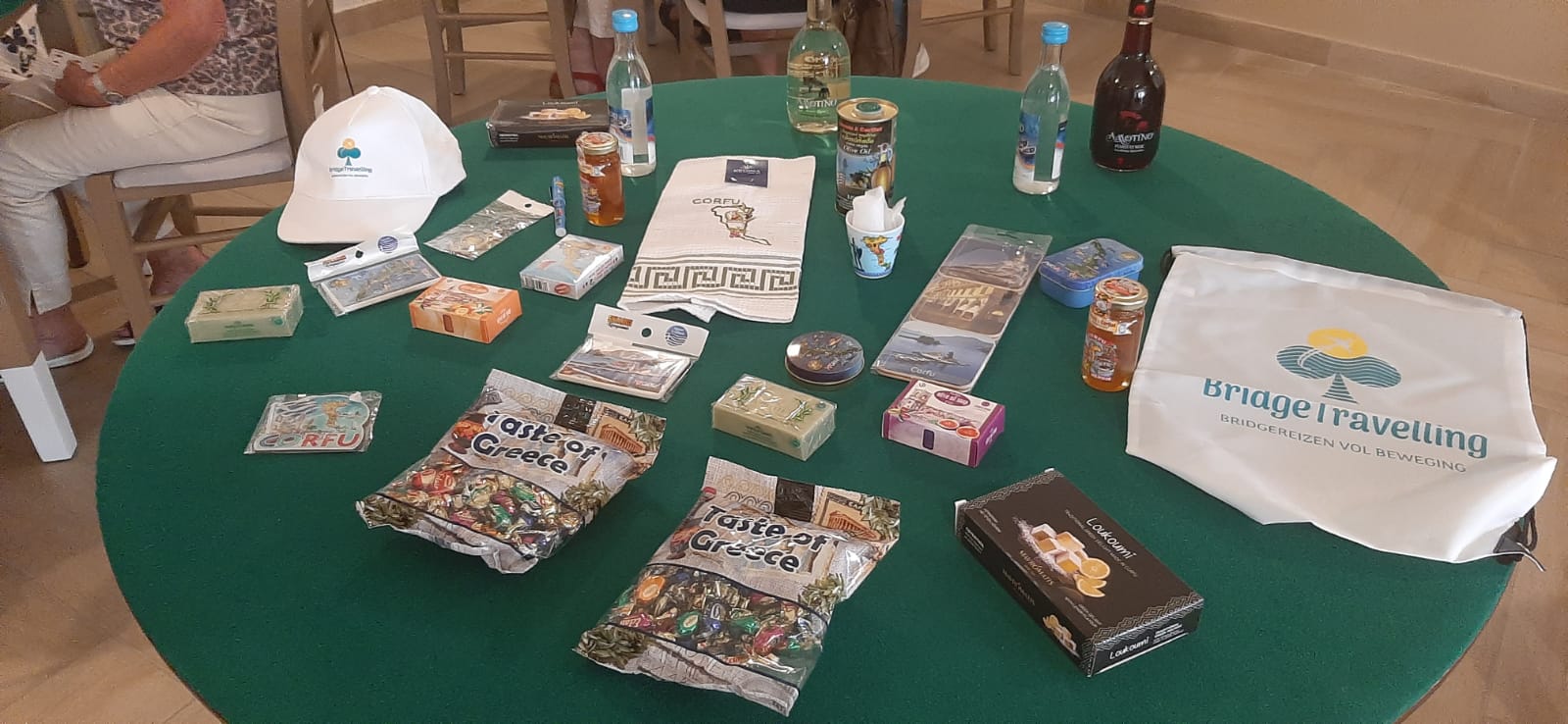 De prijswinnaars mogen als eerste een prijs uitzoeken. Verder liggen er nog wat souveniertjes van Corfu klaar als herinnering.