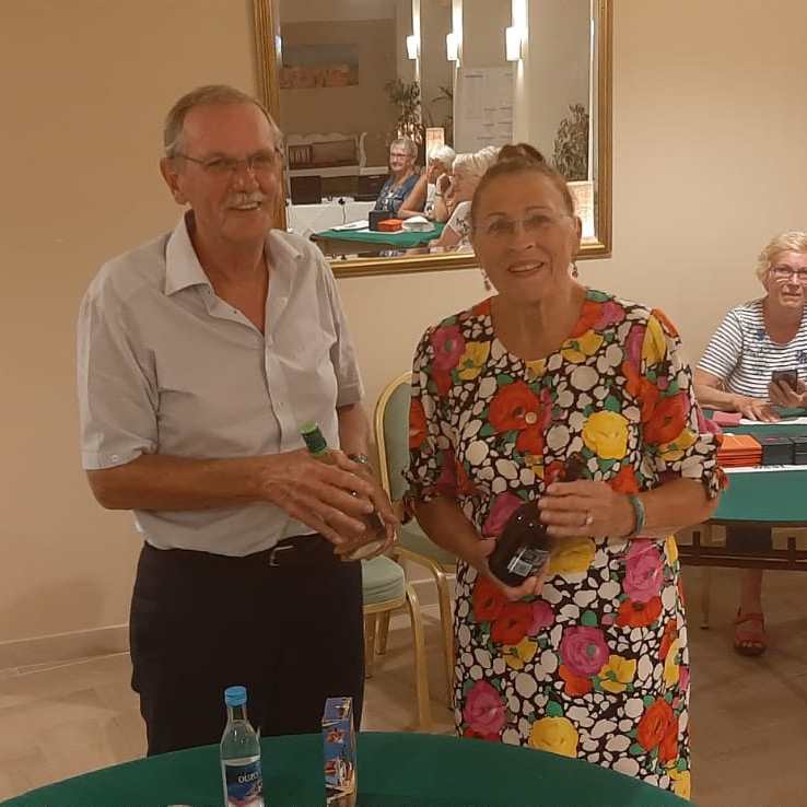 De onderlinge sfeer in de groep valt onder de categorie goed. We spelen weer in alle gezelligheid 24 spelletjes. De dagprijs valt in handen van Miep en Piet. Proficiat! Naar de uitslag.