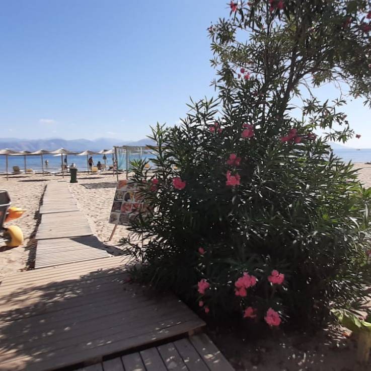 Marcel en ik (Caroline) doen een toer om de laatste beelden van Corfu op te snuiven. We rijden door dorpjes naar het zuiden. Het landschap heeft weg van duinen, er is een ongerept zandstrand én een heel schone zee. Bouwen is hier al heel lang niet meer toegestaan. Met deze prachtige rit sluiten we ons verblijf af op een eiland met veel natuur; bloemen, olijfbomen, sinaasappelgaarden met daartussen lieflijke dorpjes en rustige wegen. We hebben genoten!