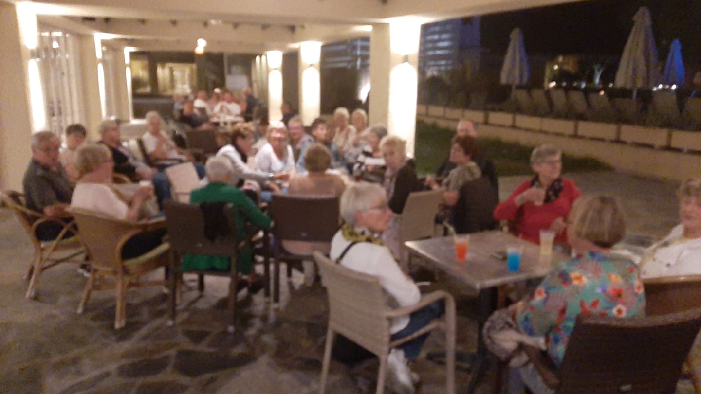 Bij aankomst in het hotel nemen we een koel drankje en genieten nog wat na. Om 19.00 uur zien we elkaar weer in het restaurant.