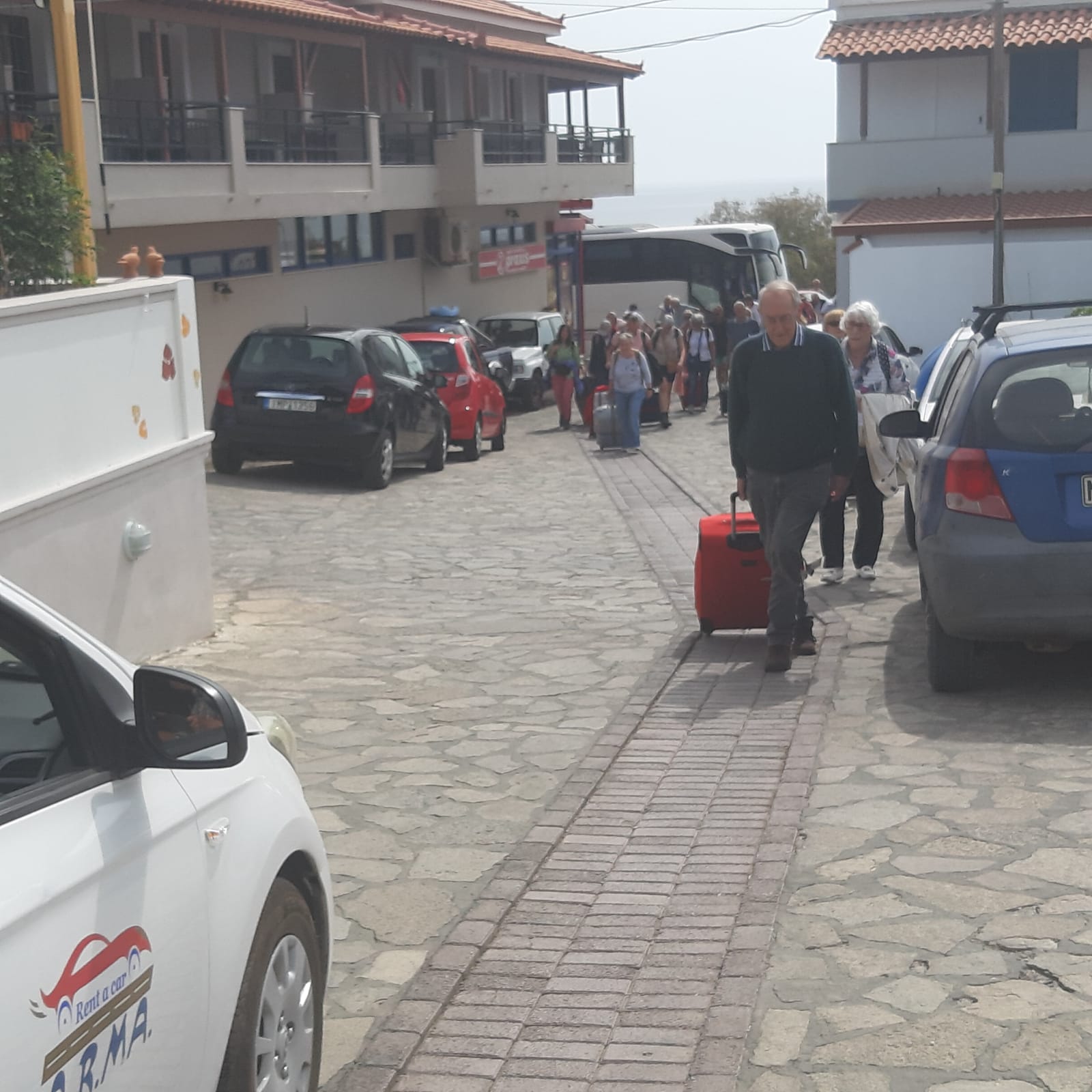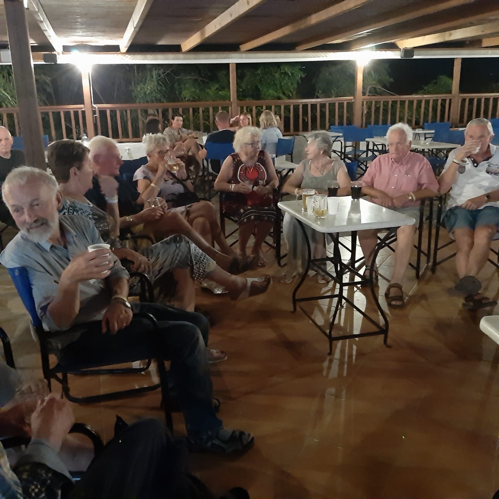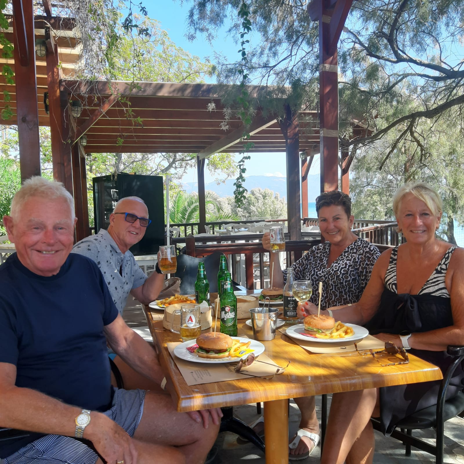 Zelf kunnen we, samen met twee gasten die met ons zijn afgereisd, al 4 dagen genieten hier op het Kampos Village Resort. Vanmiddag is de groep aangekomen. Nadat iedereen zijn sleutel ontvangen heeft zijn er gasten die eerst de kamer op willen zoeken, anderen willen eerst wat eten en drinken.
