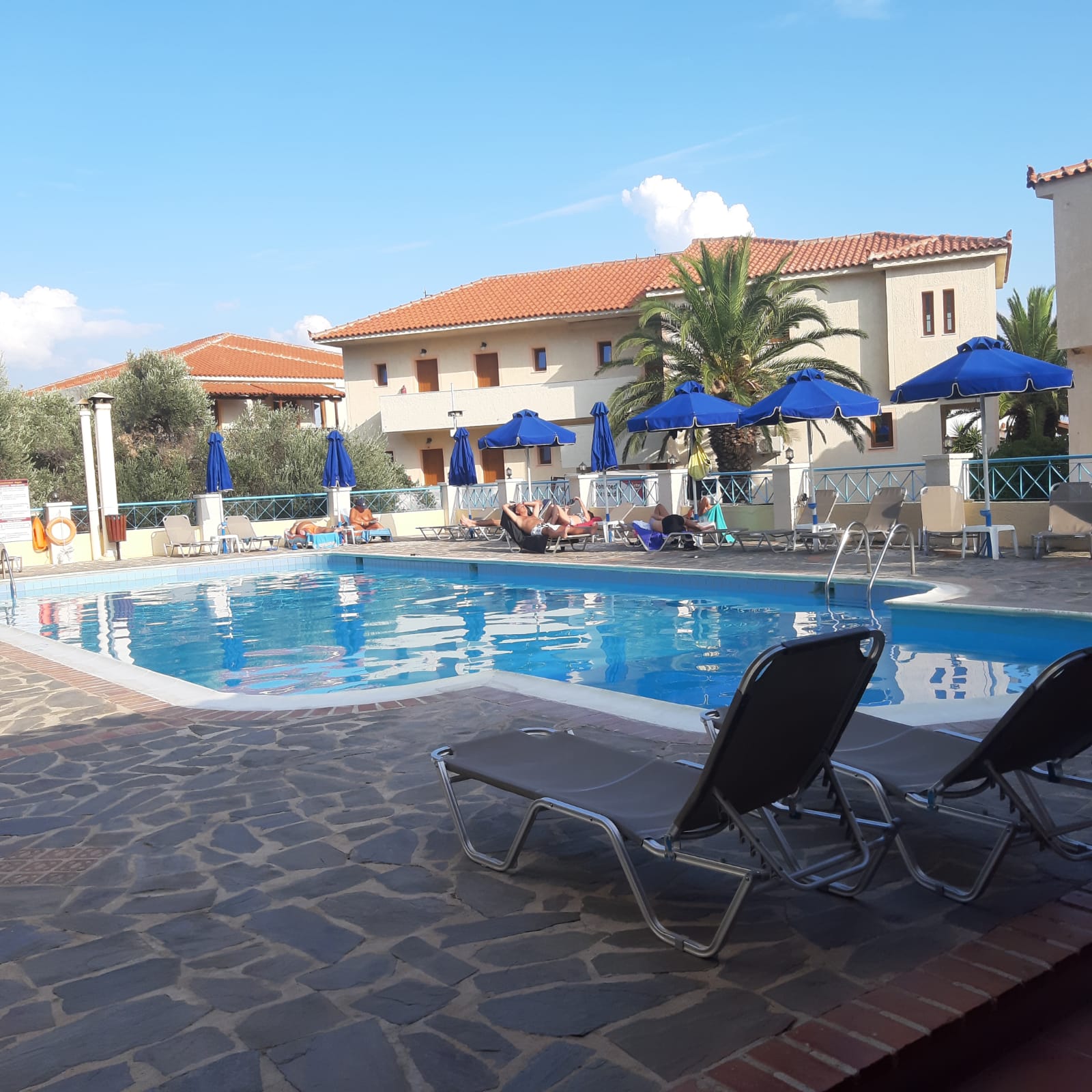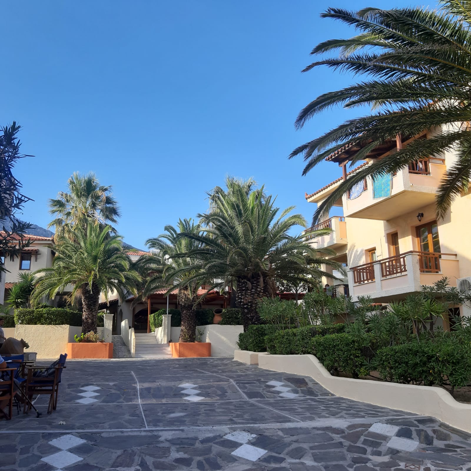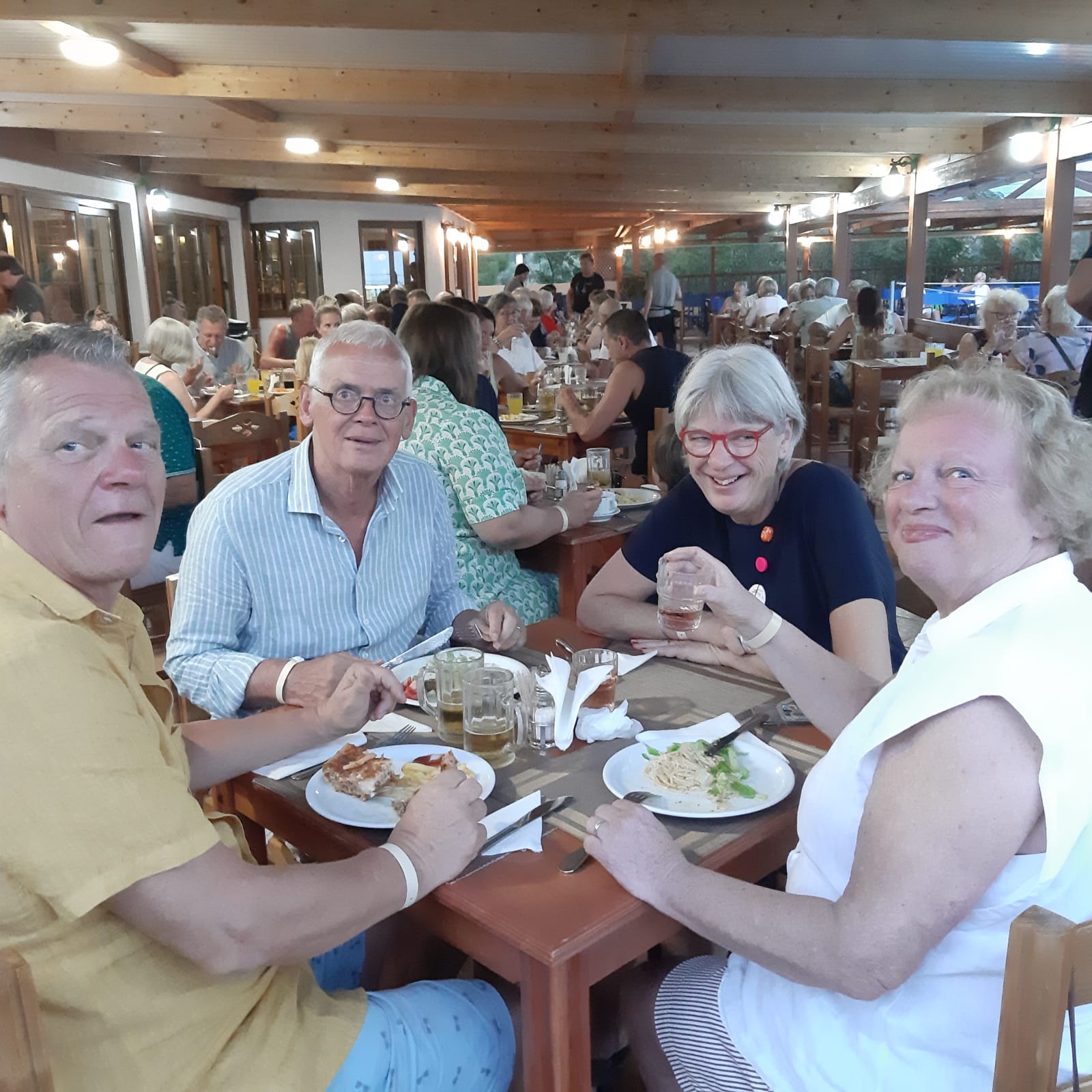 Zelf kunnen we, samen met twee gasten die met ons zijn afgereisd, al 4 dagen genieten hier op het Kampos Village Resort. Vanmiddag is de groep aangekomen. Nadat iedereen zijn sleutel ontvangen heeft zijn er gasten die eerst de kamer op willen zoeken, anderen willen eerst wat eten en drinken.