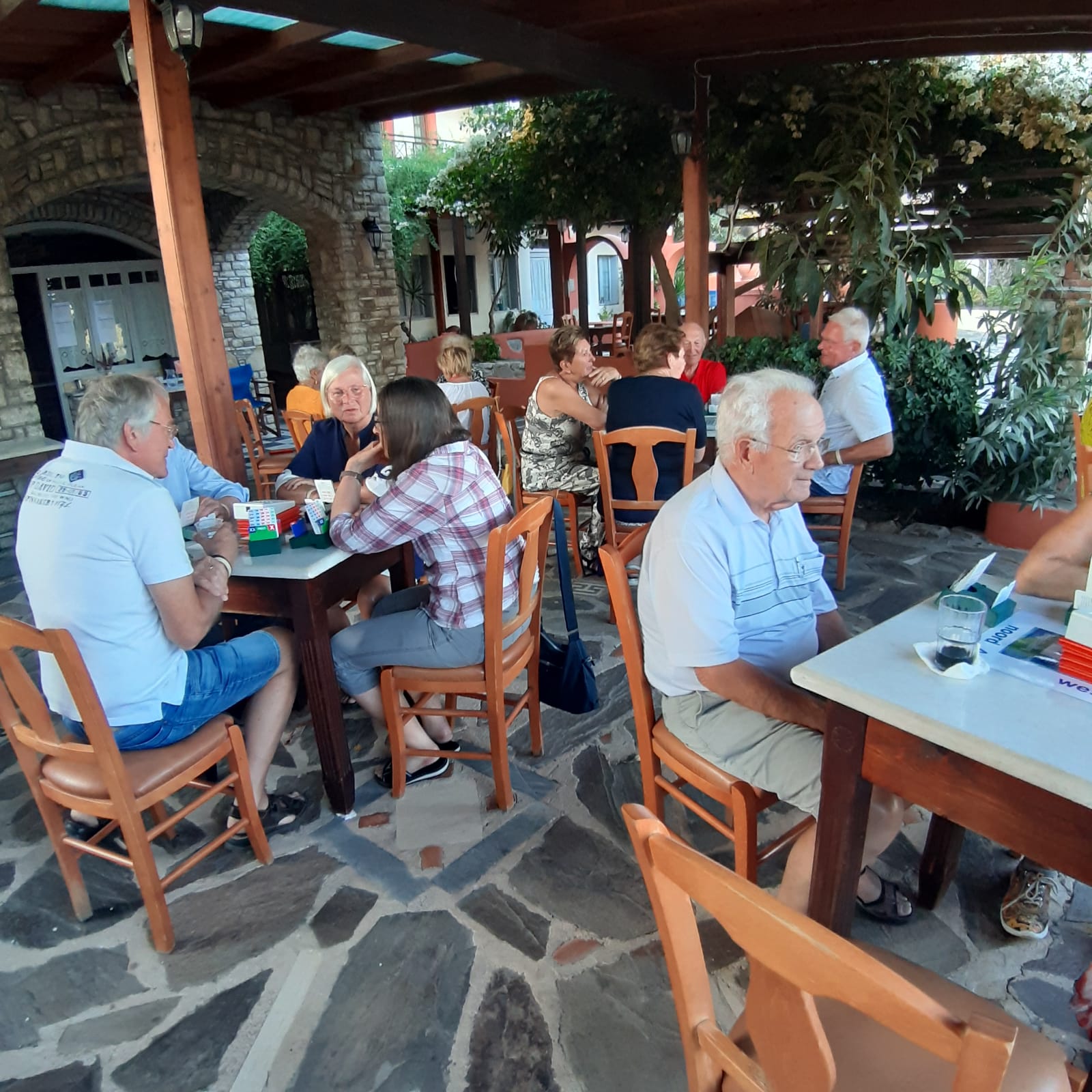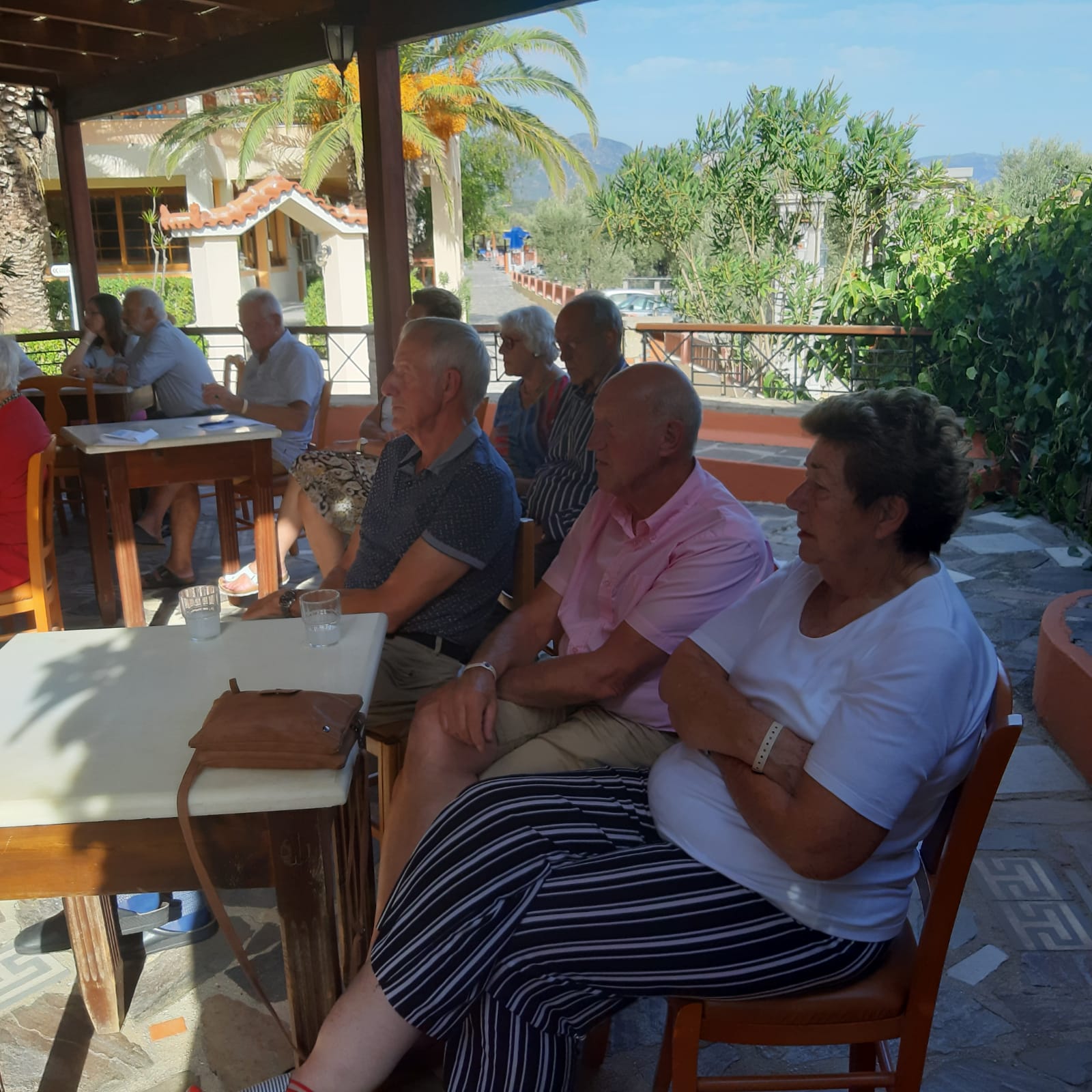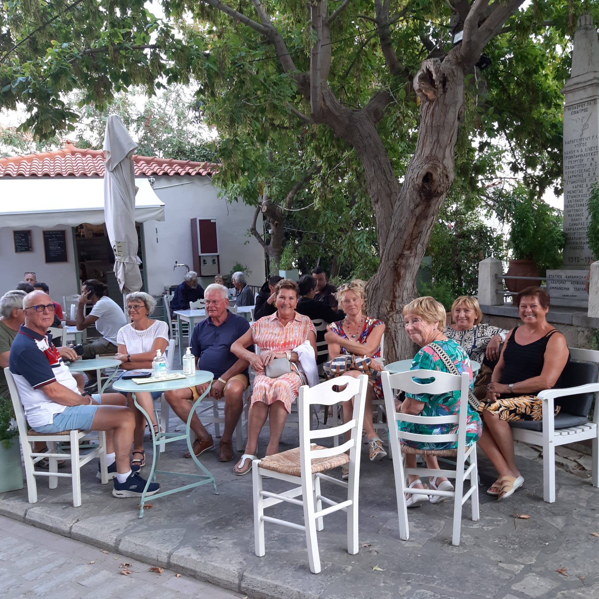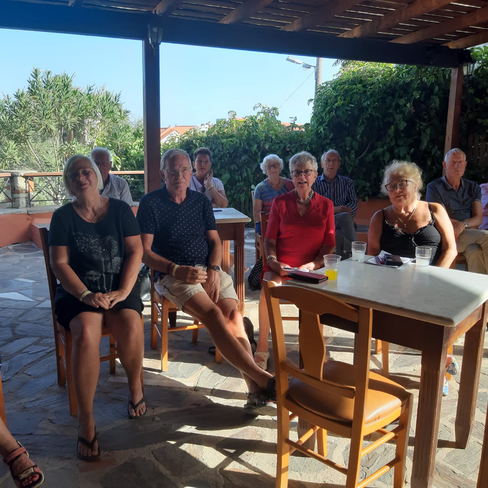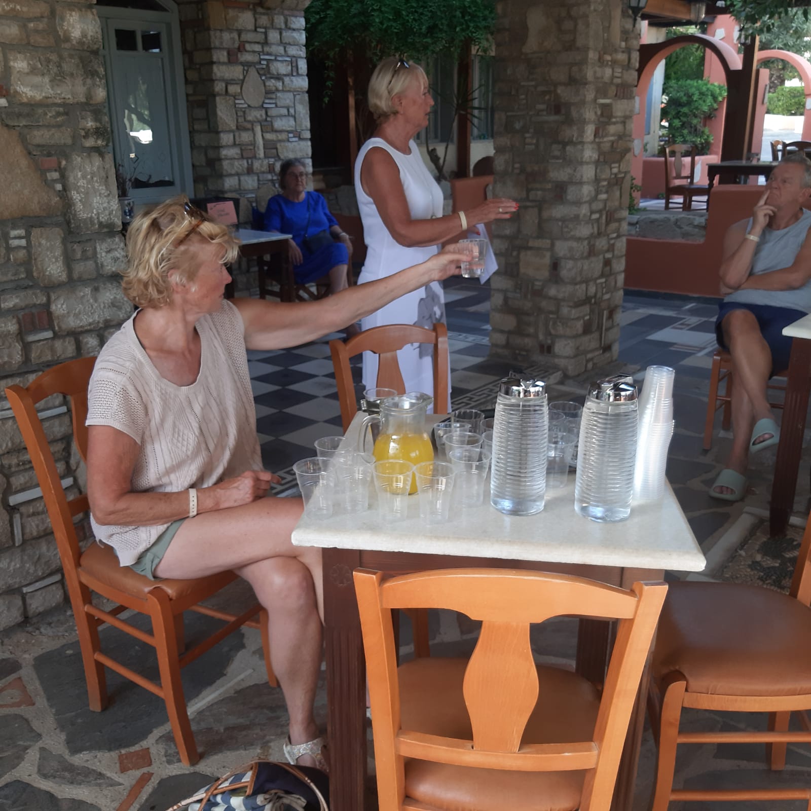 Om 16.30 uur hebben we de gasten officieel welkom geheten en samen geproost met water, orange en natuurlijk ouzo. Ida, de hostess van Correndon, is er om 17.00 uur en heeft het een en ander verteld over het eiland en over de verschillende excursies.