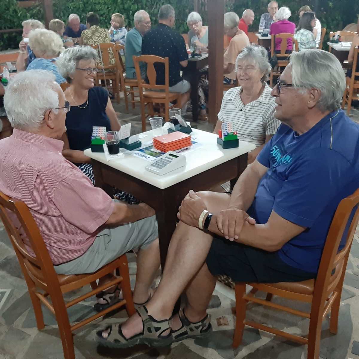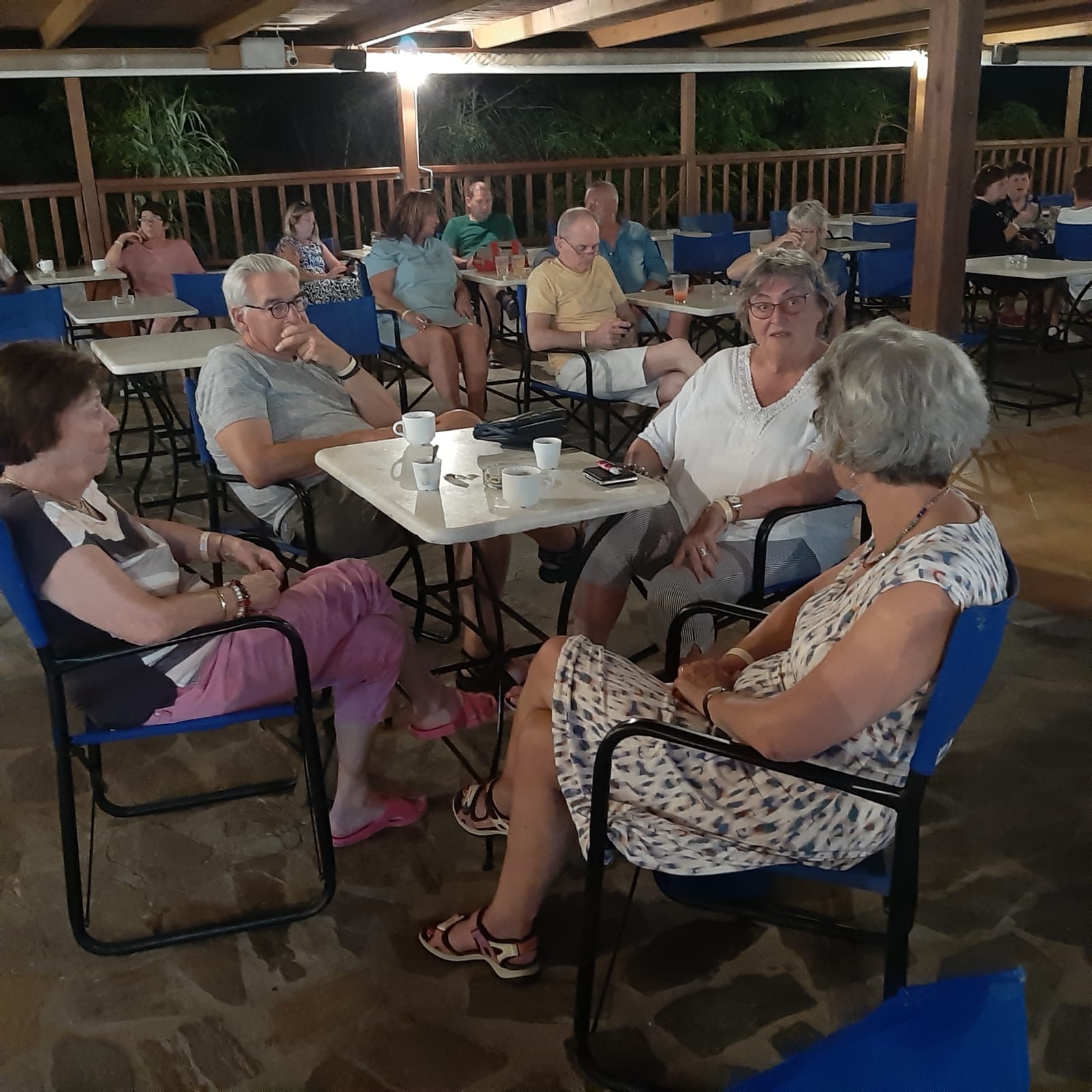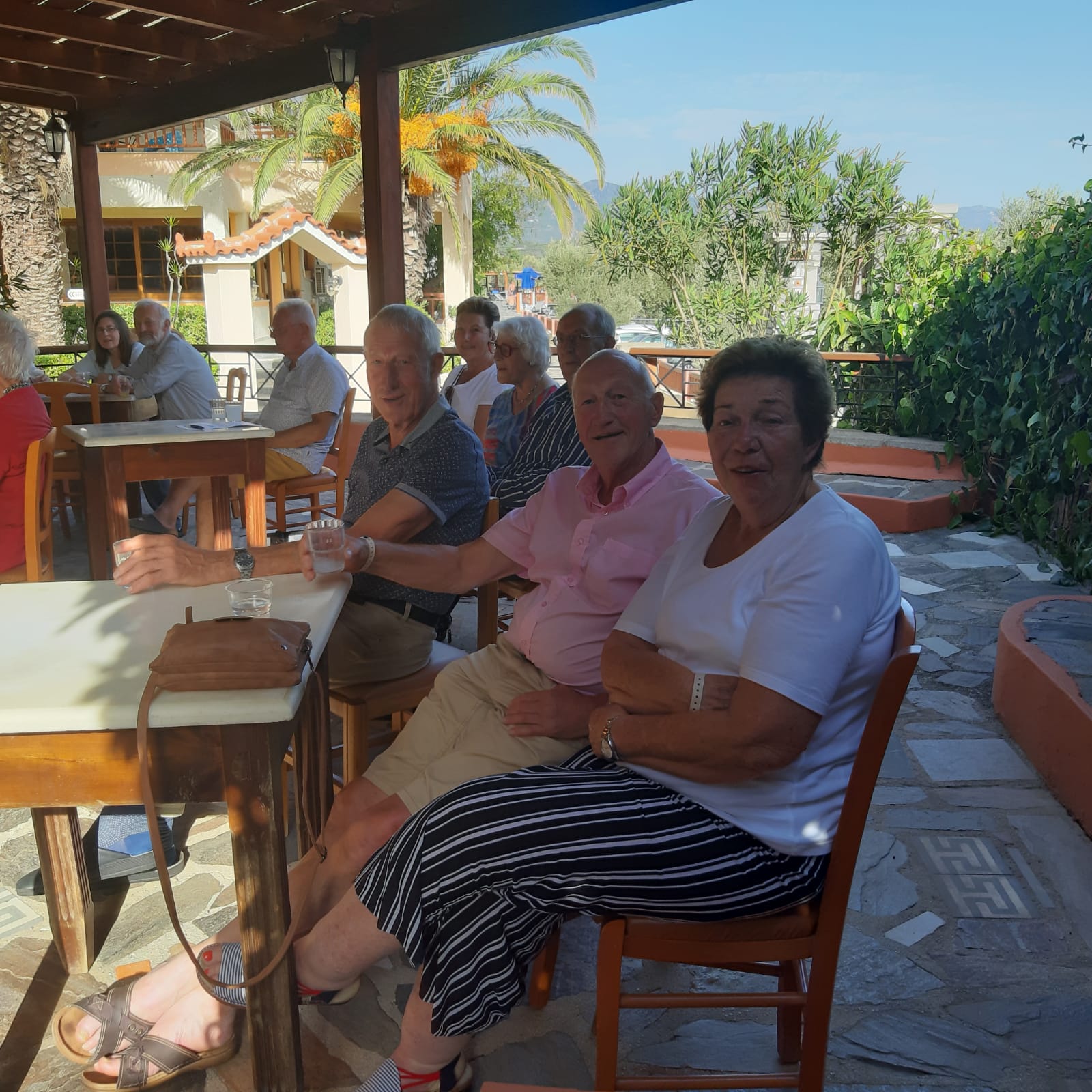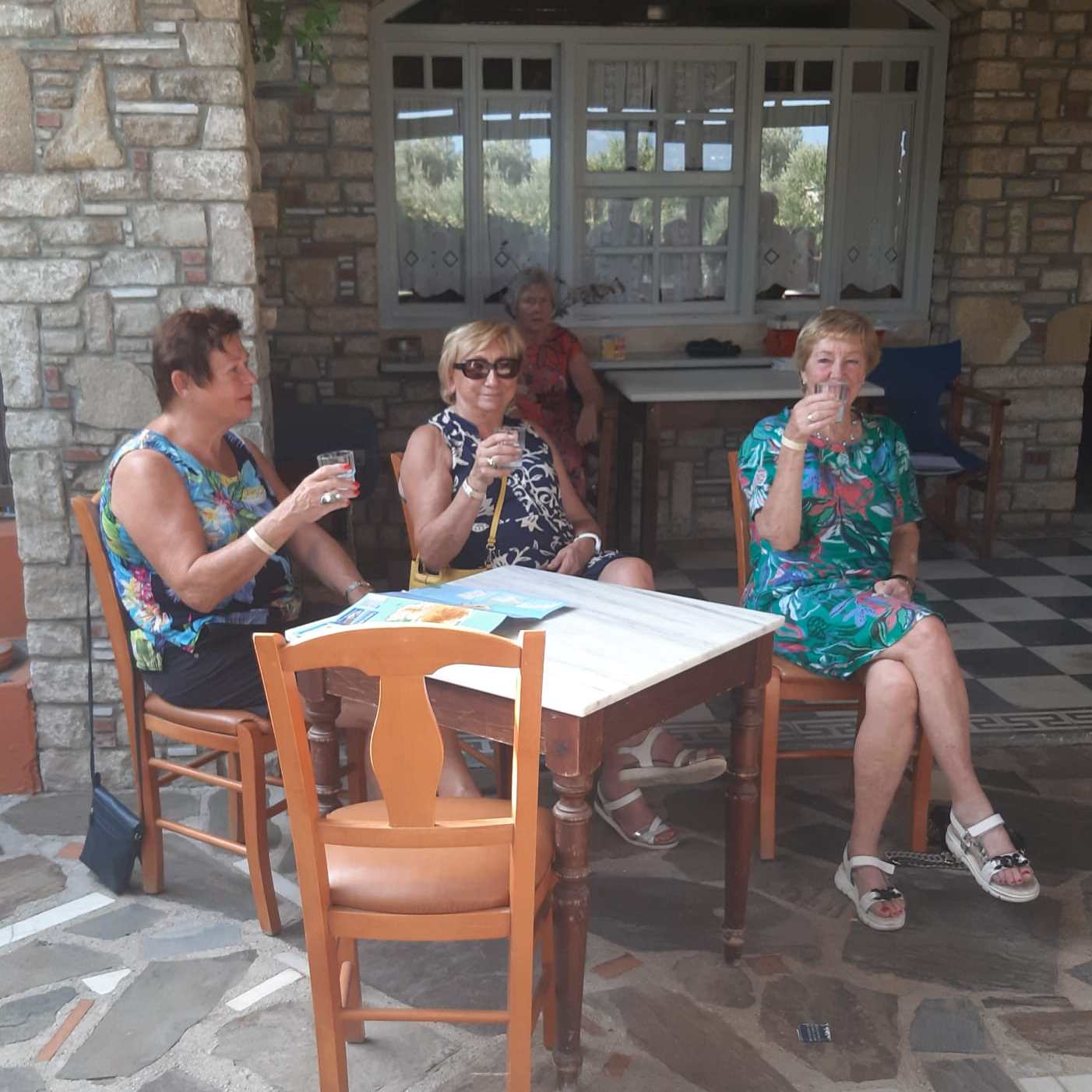 Om 16.30 uur hebben we de gasten officieel welkom geheten en samen geproost met water, orange en natuurlijk ouzo. Ida, de hostess van Correndon, is er om 17.00 uur en heeft het een en ander verteld over het eiland en over de verschillende excursies.