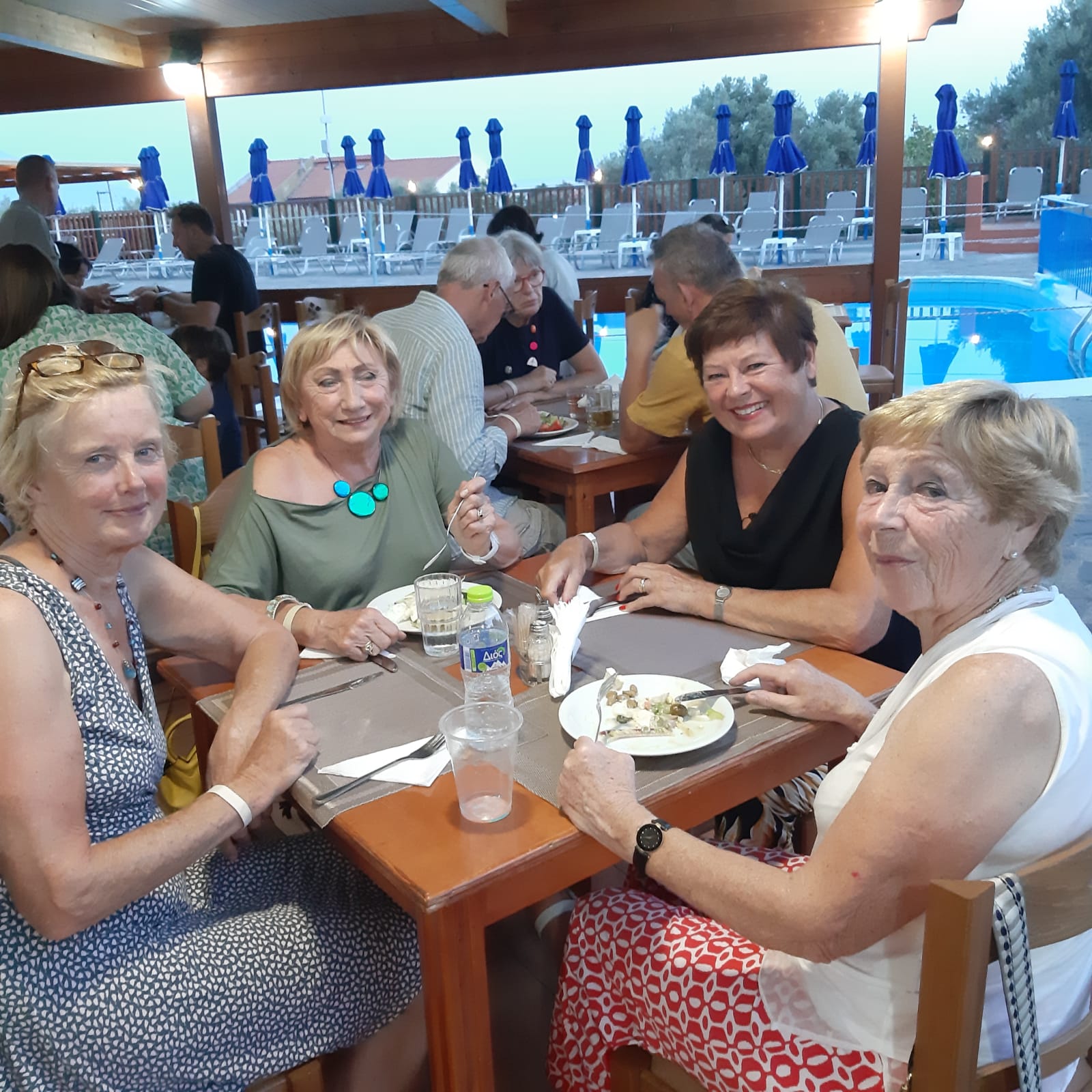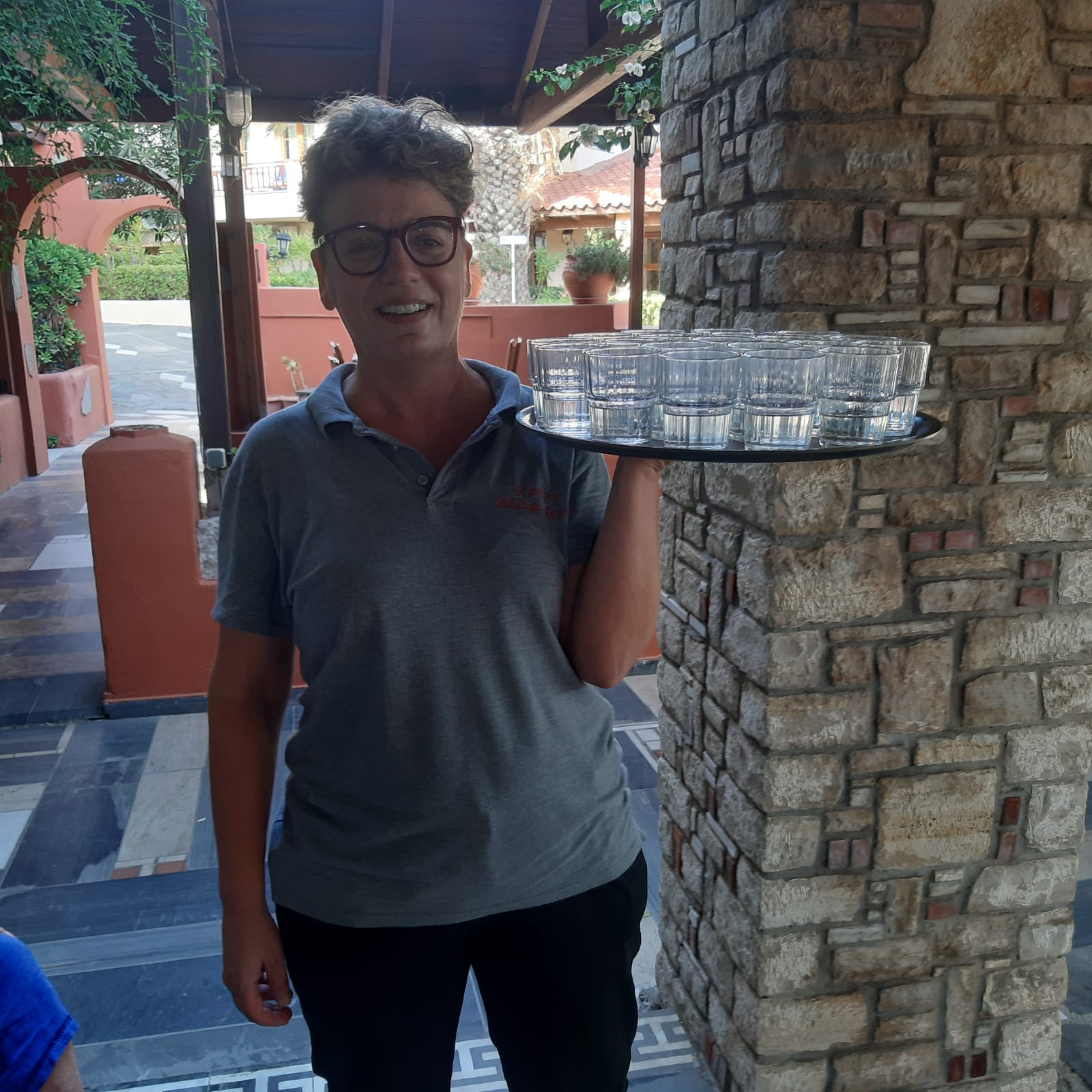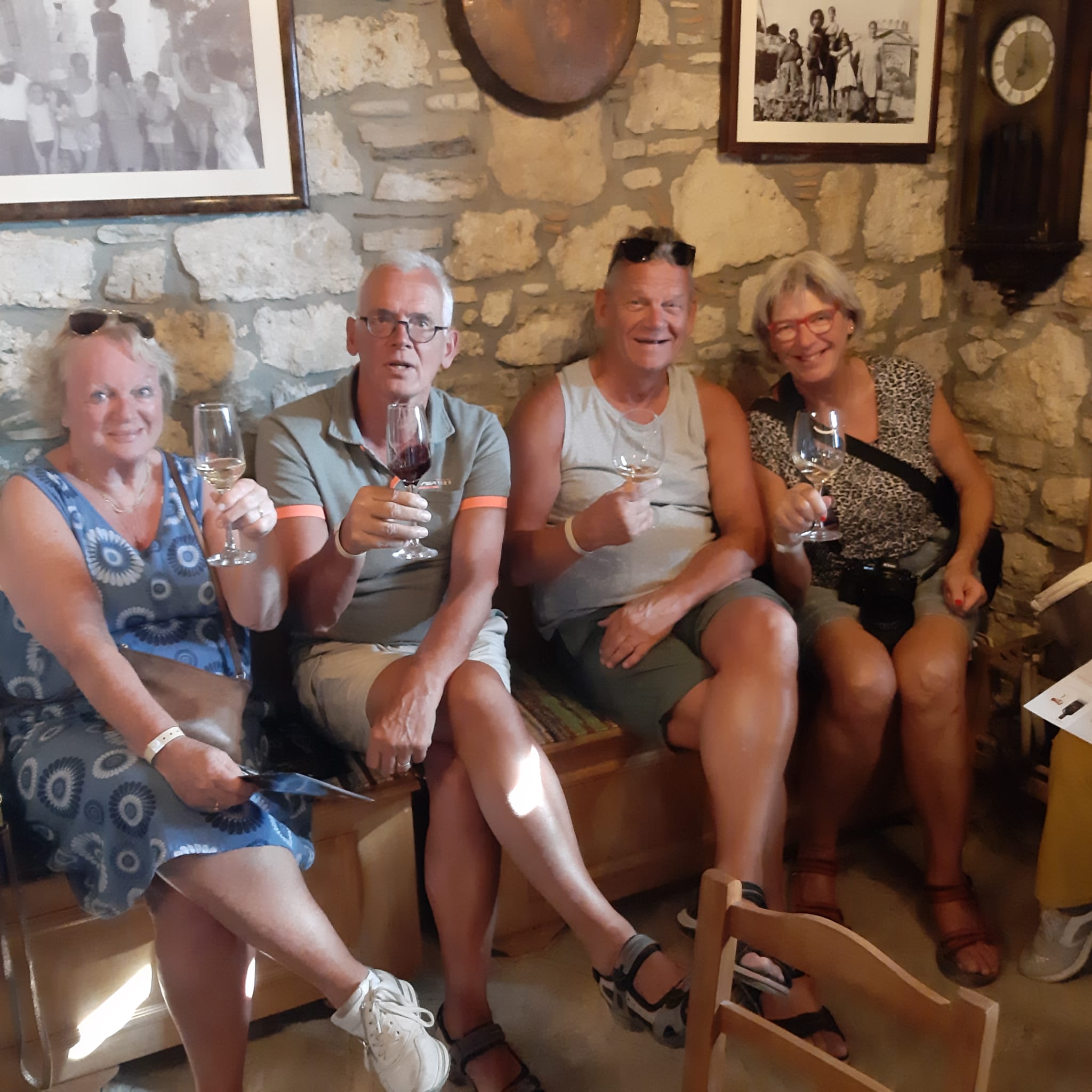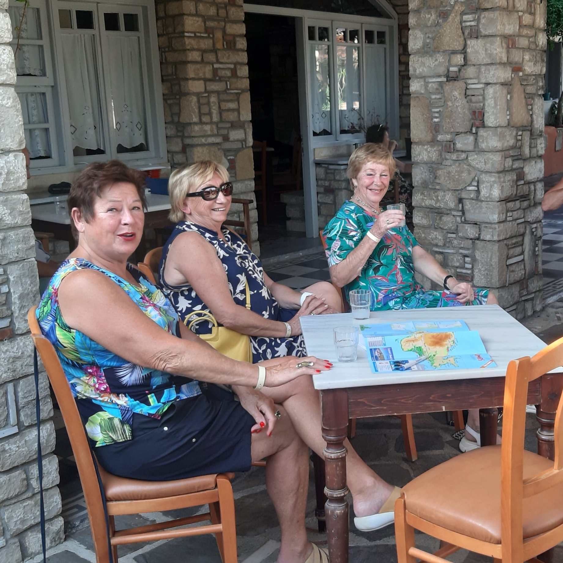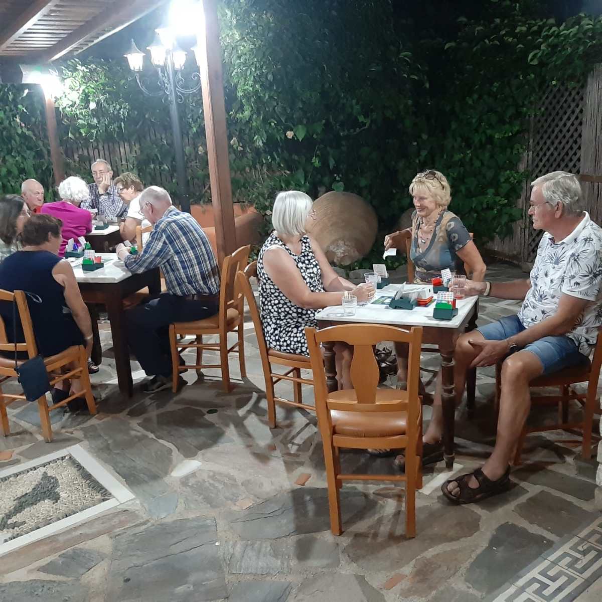 Om 16.30 uur hebben we de gasten officieel welkom geheten en samen geproost met water, orange en natuurlijk ouzo. Ida, de hostess van Correndon, is er om 17.00 uur en heeft het een en ander verteld over het eiland en over de verschillende excursies.