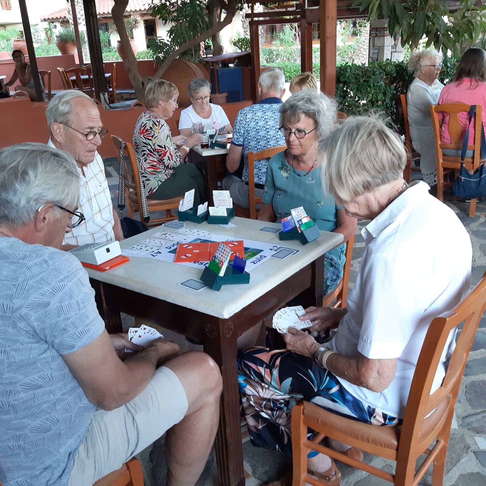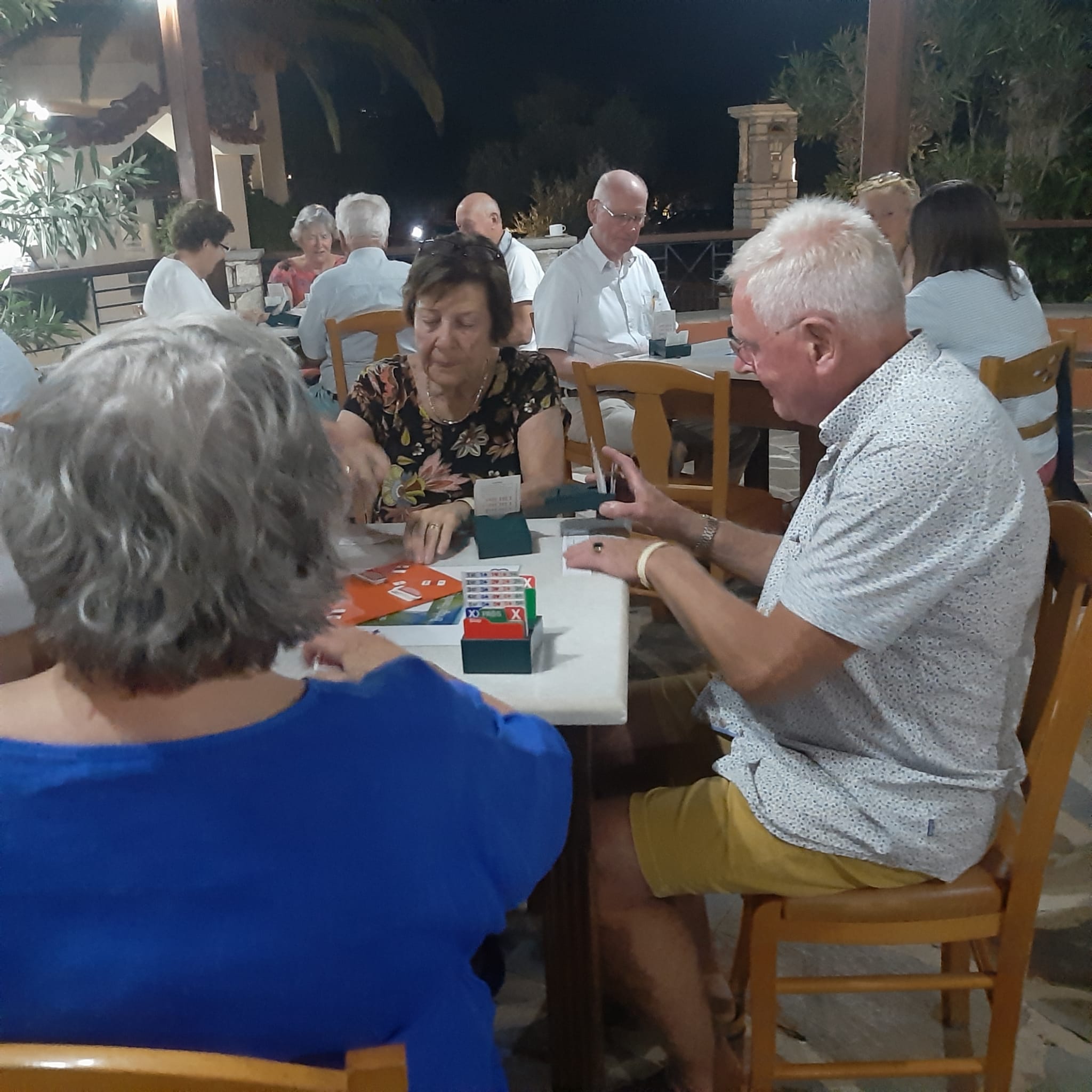 Terug op het resort hebben sommige gasten snel nog wat gegeten en zichzelf wat opgeknapt. Daarom hebben we met de gasten afgesproken om vanavond 6 rondes van 3 spellen te spelen, omdat het anders veel te laat zou worden. De winnaars zijn voor de tweede maal Hanny en Roelof geworden met maar liefs 68,52 procent. Van harte gefeliciteerd. Naar de uitslagen.