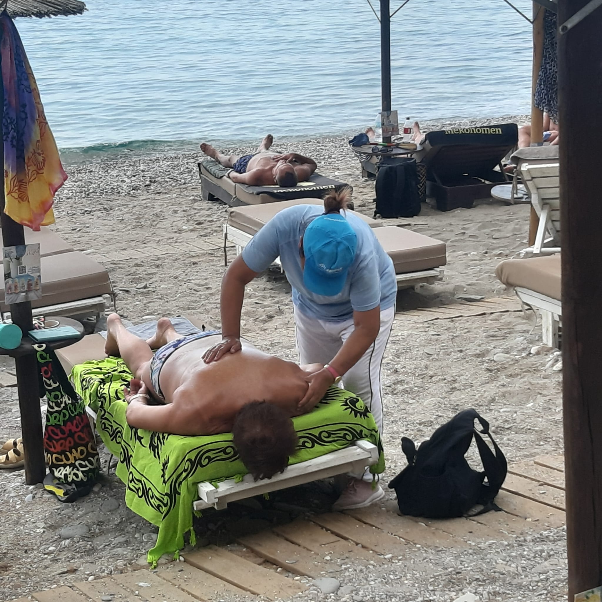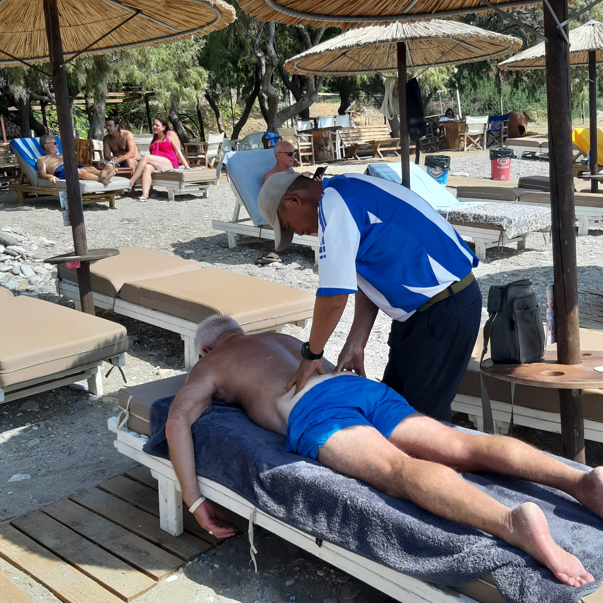 Er loopt iedere dag een echtpaar rond op het strand, waarbij je je kan laten masseren. Omdat er toch wat gasten zijn met rug- of nekklachten hebben ze hiervan gebruik gemaakt met zeer goede resultaten. Er zijn zelfs al weer afspraken gemaakt voor de komende dagen. Een aantal dames heeft vandaag hun kledingkast uitgebreid met de aankoop van een jurkje.