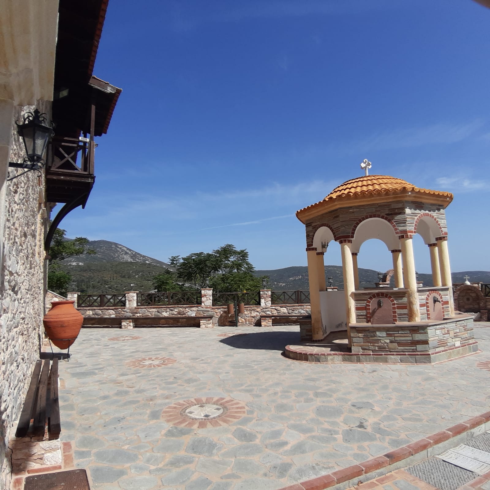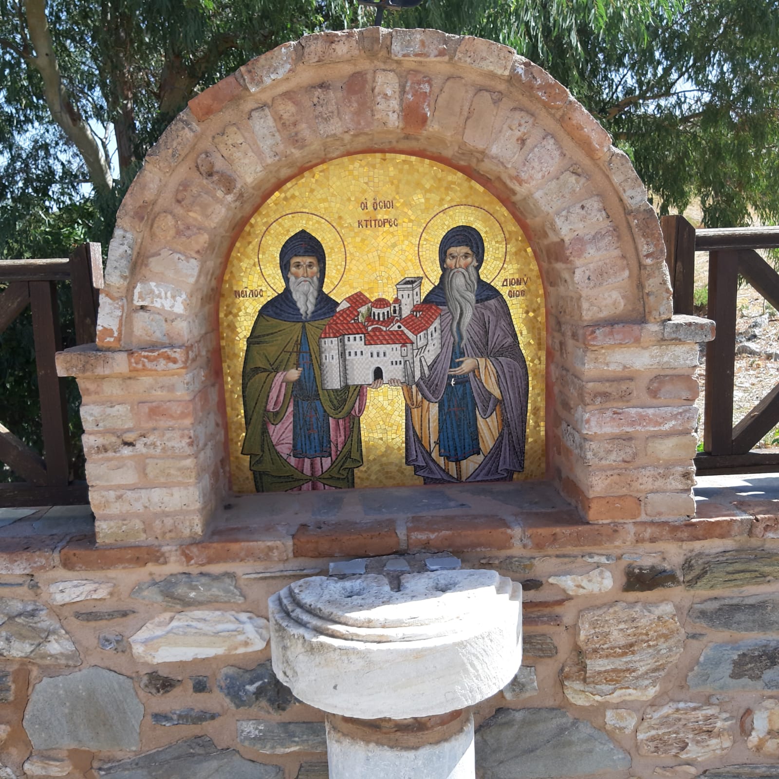 Vervolgens hebben we het klooster van Megalis Panagias bezocht. Een prachtig klooster waar nog slechts twee monniken wonen. In de kapel kregen we een zeer goede uitleg van een gids waardoor we het geloof hier op het eiland beter gaan begrijpen. Ook het uitzicht vanaf hier is adembenemend.