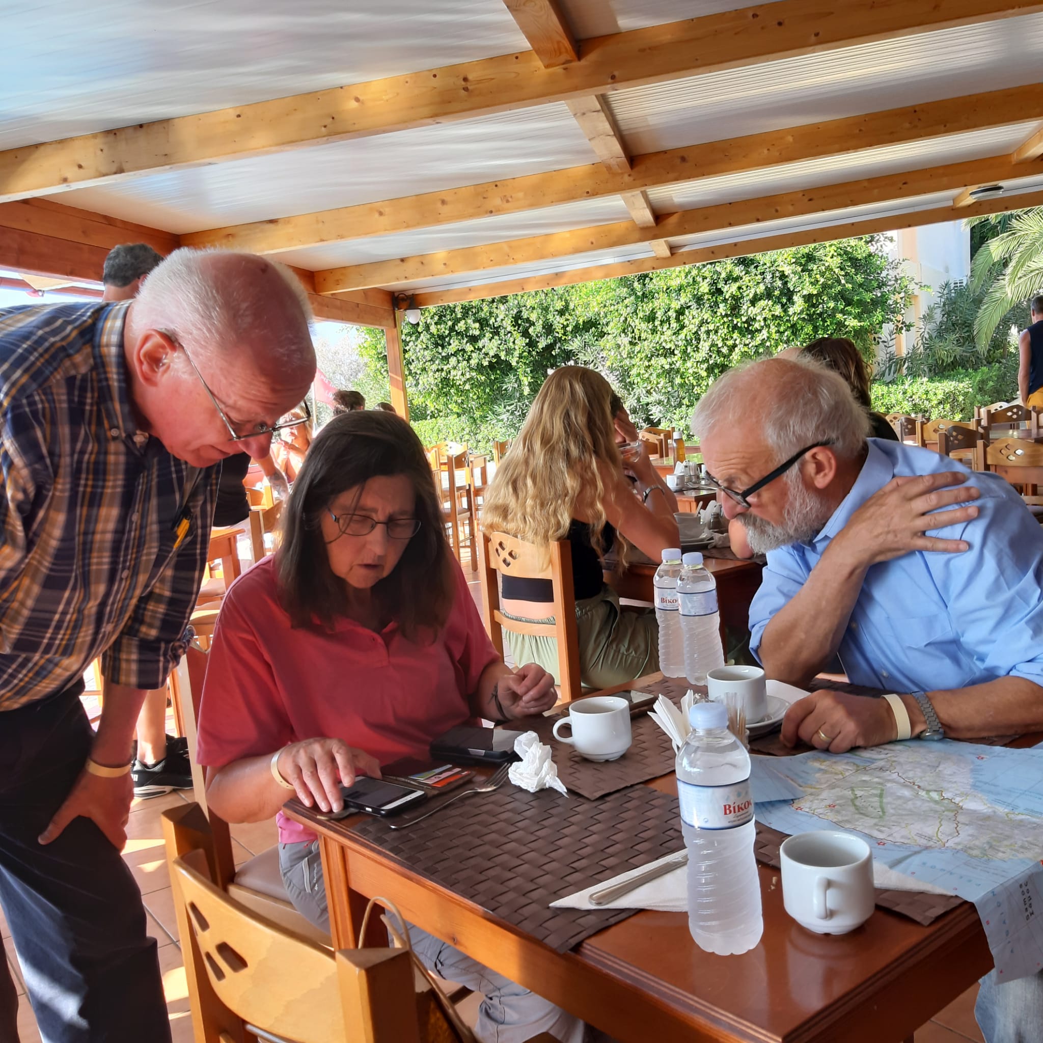De zon ging al bijna onder toen we door Antonis naar ons hotel teruggebracht werden. Al met al een heerlijke dag met dank aan Ida voor de voortreffelijke begeleiding.