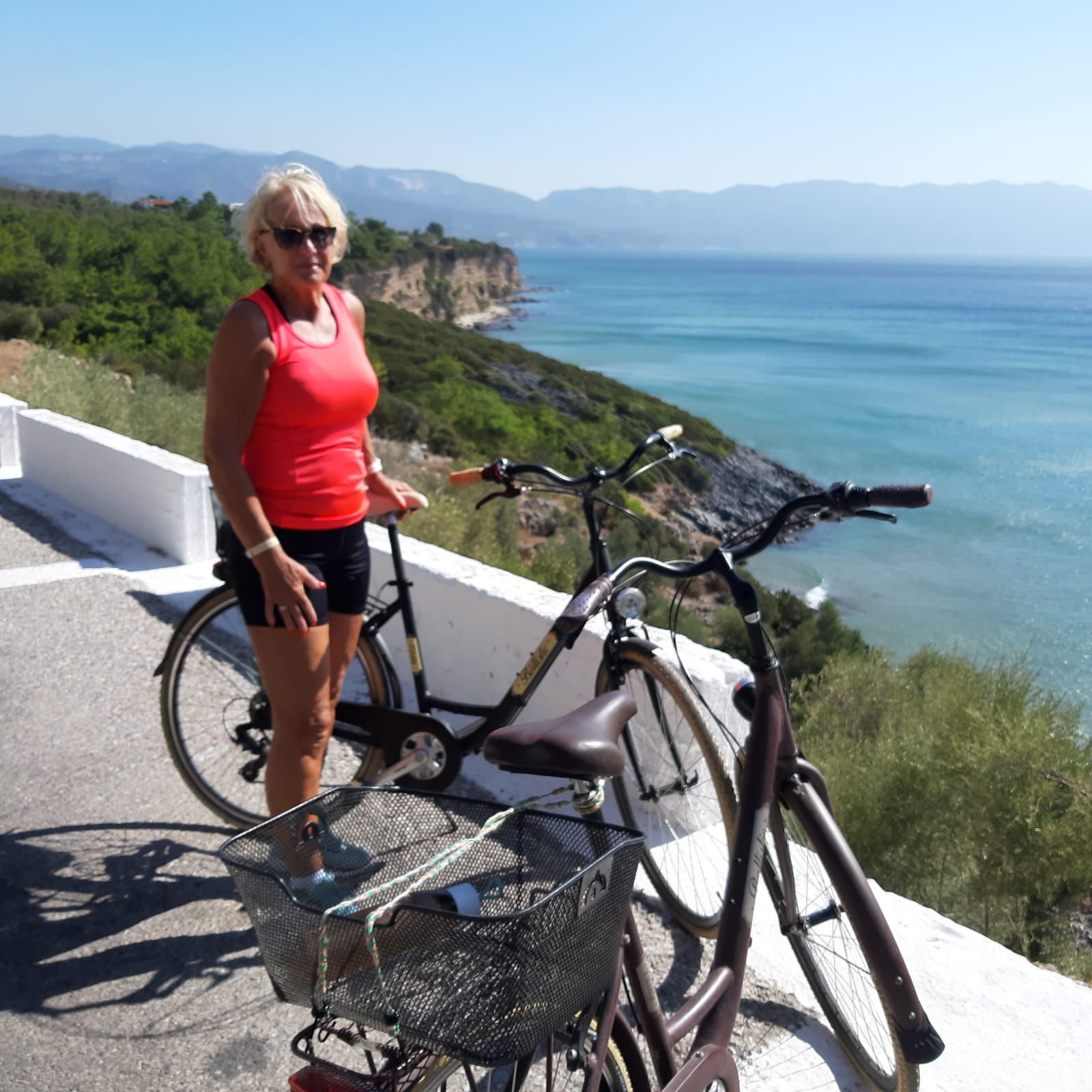Vanmorgen hebben Hiske en ik, Jacqueline, fietsen gehuurd en zijn daarmee op stap gegaan. We wilden onze beenspieren even testen en dat is goed gelukt. Er is hier natuurlijk geen stukje vlak, maar we wisten dat het hele stuk omhoog klimmen beloond werd met een heerlijk stuk naar beneden rijden.