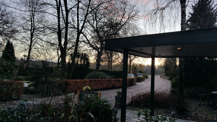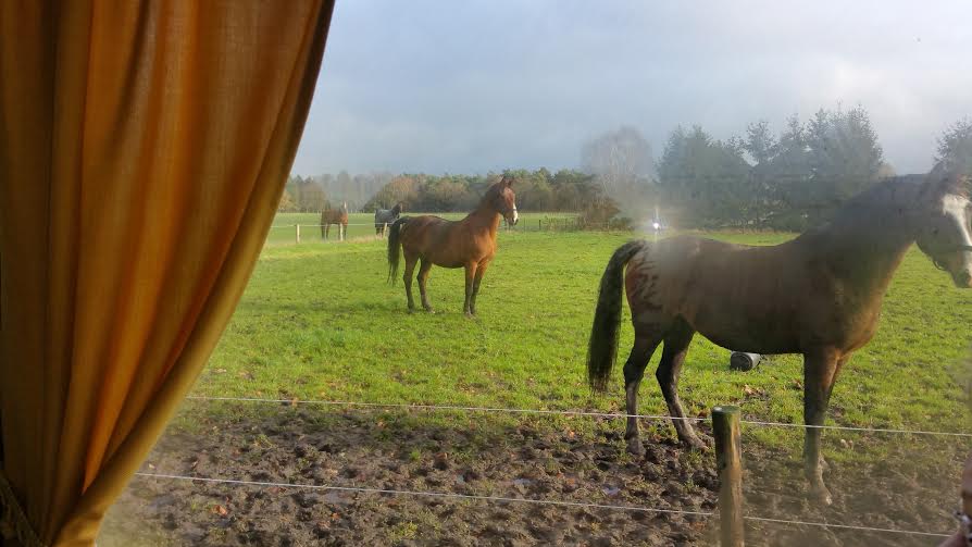 Opstaan met zacht regenmuziek en een mooi uitzicht is best gezellig. Zo meteen een lekker ontbijt en dan met de verwarmde paardentram op pad.