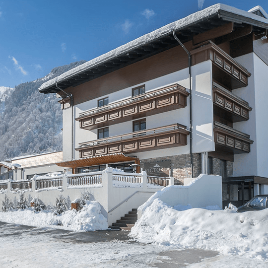Het luxe en elegante Hotel Victoria Kaprun ligt op een prachtige locatie in Kaprun en bestaat uit 2 gebouwen. Het hoofdgebouw en de dependance zijn ondergronds met elkaar verbonden. De kamers van Hotel Victoria zijn trendy en zeer verzorgd ingericht en zijn voorzien van een flatscreen-tv met satellietzenders en een moderne badkamer met douche. Daarnaast hebben alle kamers uitzicht op het prachtige berglandschap van Kaprun.
