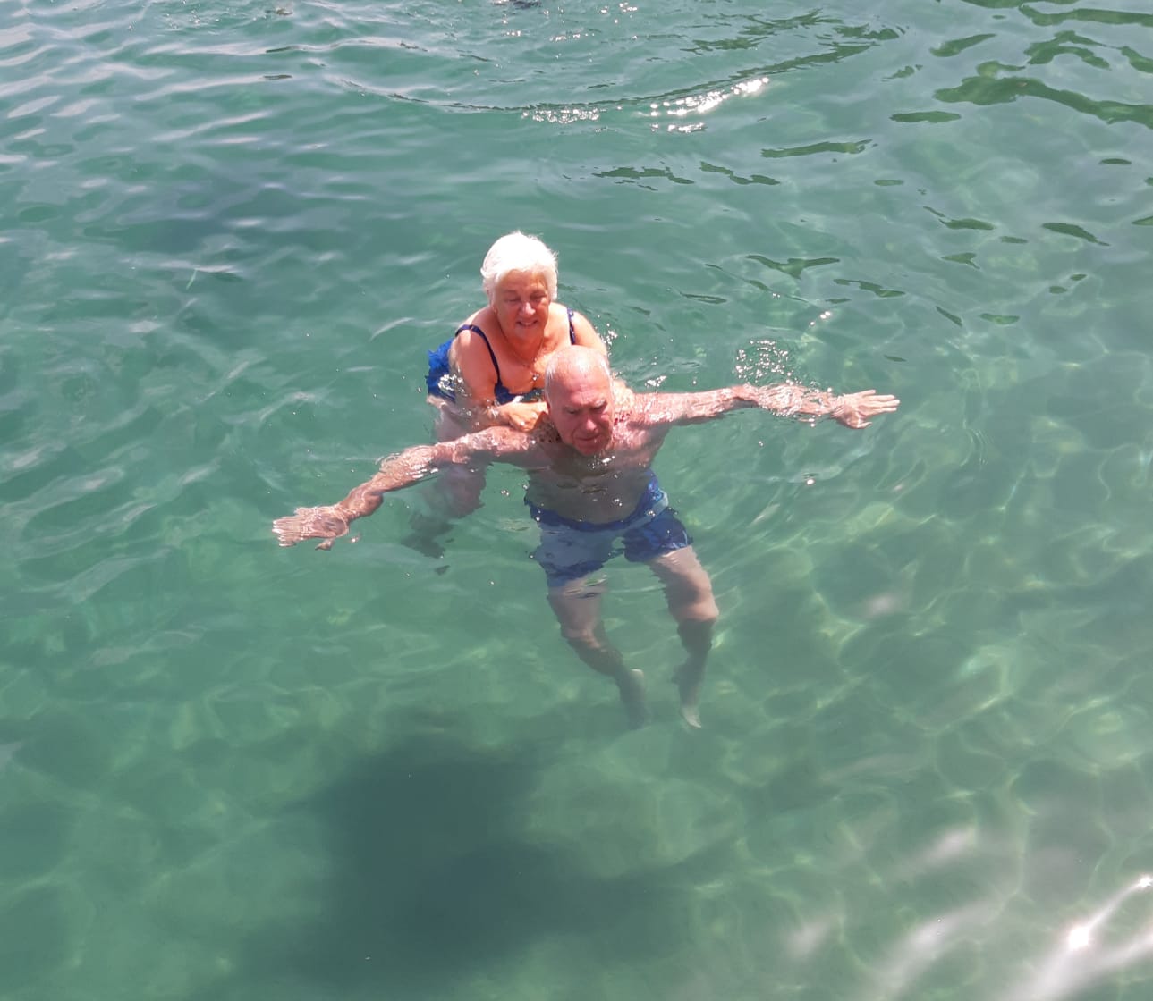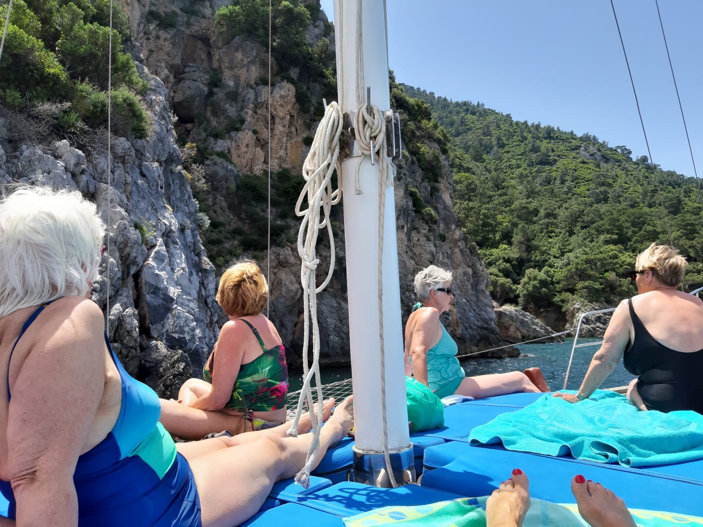 Op weg naar een strandje tezamen met het zonnetje, een windje en een fijne sfeer werd het een heerlijk vaart. Bij het strandje kun je een sprong in het diepe wagen tot wel vijf meter diep. Tijdens de tocht werd de lunch geserveerd en wonder boven wonder zijn er op de terugweg dolfijnen gespot. Zij zwommen gezellig een stukje mee, een onvergetelijke ervaring.