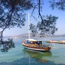 De dag na het opstaan in Emel pension, aan de rand van het dorpje Guzelcamli, wordt veelal besteed aan luieren tussen de bloemen en olijfbomen en zonnen aan het strand met tussendoor een lunch. Guzelcamli betekent ‘dorp met mooie pijnbomen’. Een perfecte naam voor het pittoreske dorpje want pijnbomen zijn er in overvloed. Alhoewel hier geen massatoerisme is wordt Guzelcaml toch jaarlijks bezocht door vele vakantiegangers, te begrijpen want hier vind je prachtige zandstranden en indrukwekkende natuurpracht. Voor genieten hier hoef je dus geen moeite te doen, het wordt ons gewoon in de schoot geworpen waar je ook maar bent 🙂 .