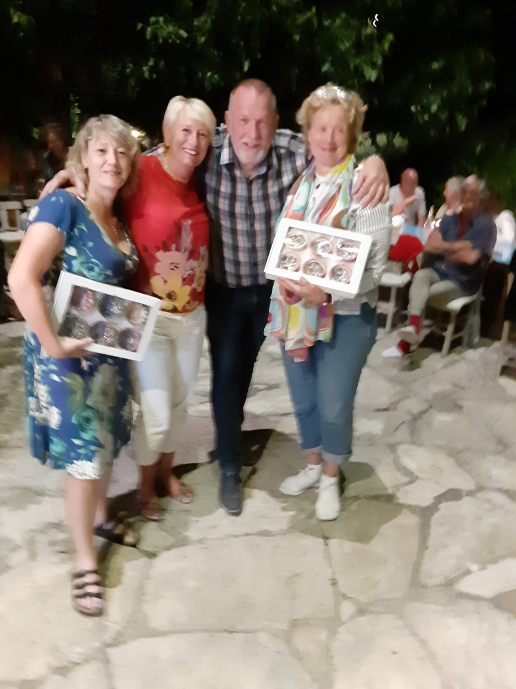 Nadat we met z’n allen het personeel met een staande ovatie hebben bedankt kon het feest beginnen, maar niet voordat Arnold en ondergetekende door Geritte werden toegesproken. Zij bedankte ons voor alle goede zorgen en het regelen van alles waaronder natuurlijk ook alle bridgezaken.