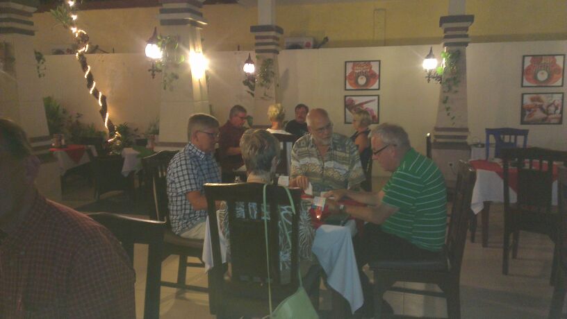 ’s Avonds de eerste bridge drive, we speelden met 10 paar. We begonnen wat te laat, want het eten in dat restaurant (Balboni) nam wat meer tijd in beslag dat gedacht.