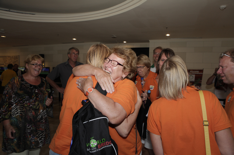 Op de laatste dag van het WK-bridge op Bali sluit het Nederlands damesteam af met een bronzen medaille. Zowel het open team als het seniorenteam gaven op in de vijfde zitting van de kwartfinale. De WK-titel (2011) heeft het open team niet kunnen behouden.
