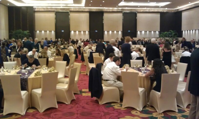 We moesten wel wat dooreten om het busje te halen naar het conference centrum waar we om 20:00 uur de opening van het WK hebben meegemaakt. We zijn daar met 18 van de 24 personen naar toegegaan met 3 busjes. Was wel aardig. Het Nederlandse team kreeg het meeste applaus. Opening was om 21:15 afgelopen. Groet, Gijsbert
